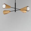 The Rizzo Chandelier elevates any room with its stylish flair and spirited design. This modern fixture blends faceted metal shades in Natural Aged Brass with striking Matte Black accents, showcasing a flat-bottomed Satin White glass shade that emits soft, inviting light.