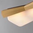 The Rizzo Flush Mount enhances any room with its stylish design and inviting illumination. This modern fixture blends faceted metal shades in Natural Aged Brass with striking Matte Black accents, creating a sophisticated focal point for your space.