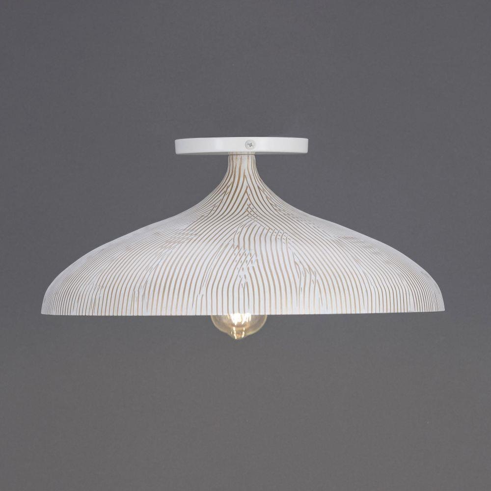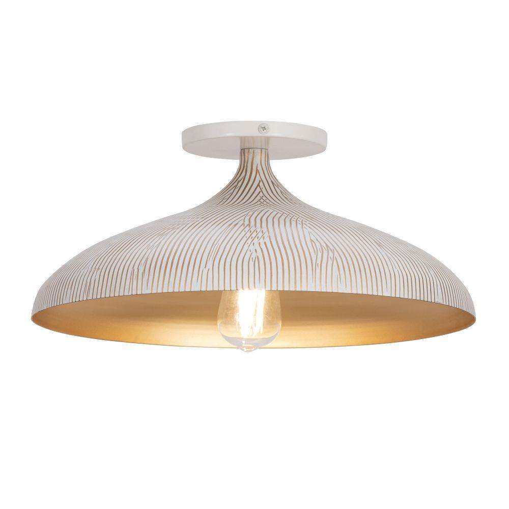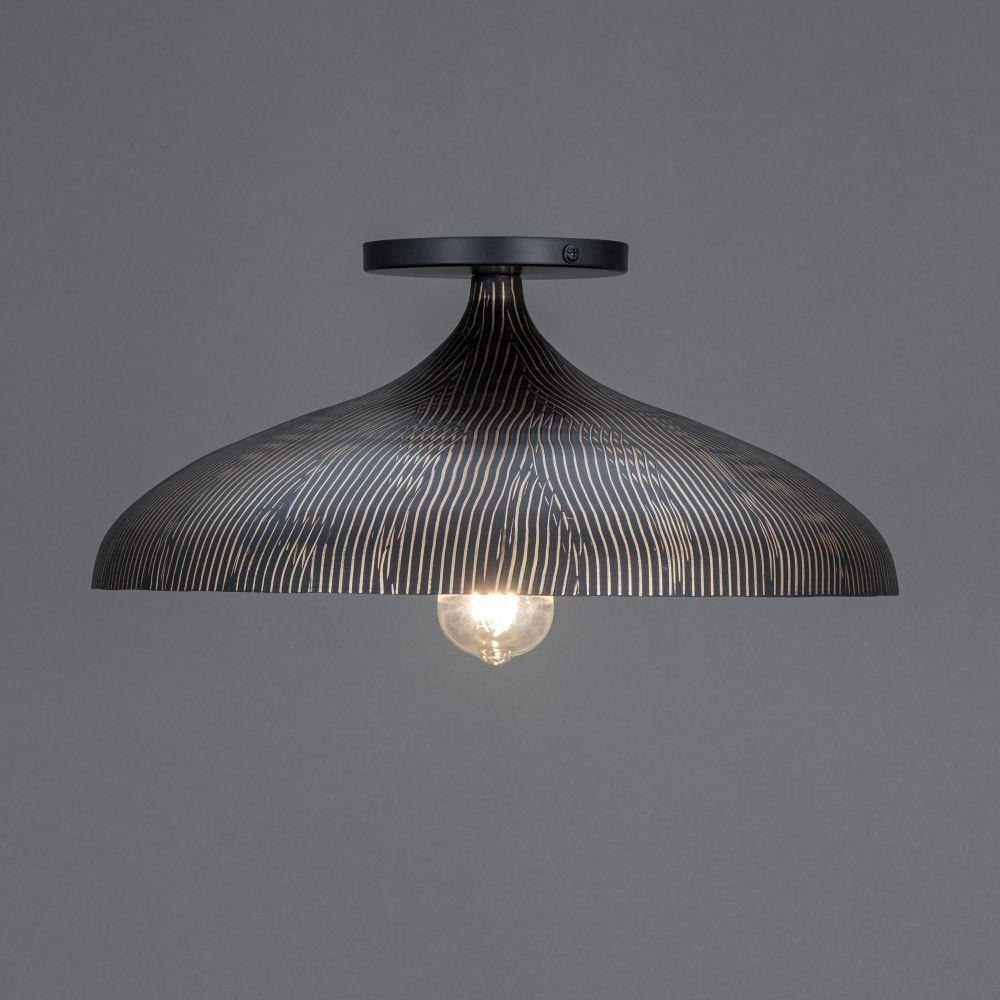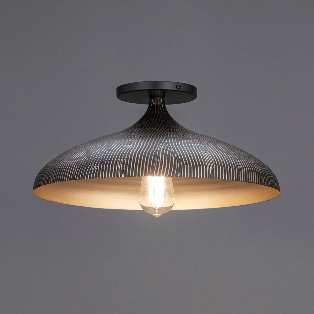 Graceful and sculptural, Fleur's gently flared silhouette brings a sense of quiet sophistication to any space. Hand-spun metal shades are adorned with a striated finish, scraped by hand to reveal glowing Gold undertones beneath layers of Matte Black or White. A matching Gold interior warms the light within, while a coordinating fabric cord suspends them for convenient height adjustments. Offered in multiple pendant sizes and a flush mount, Fleur offers tailored elegance to interior spaces such as entries and over a kitchen island.
