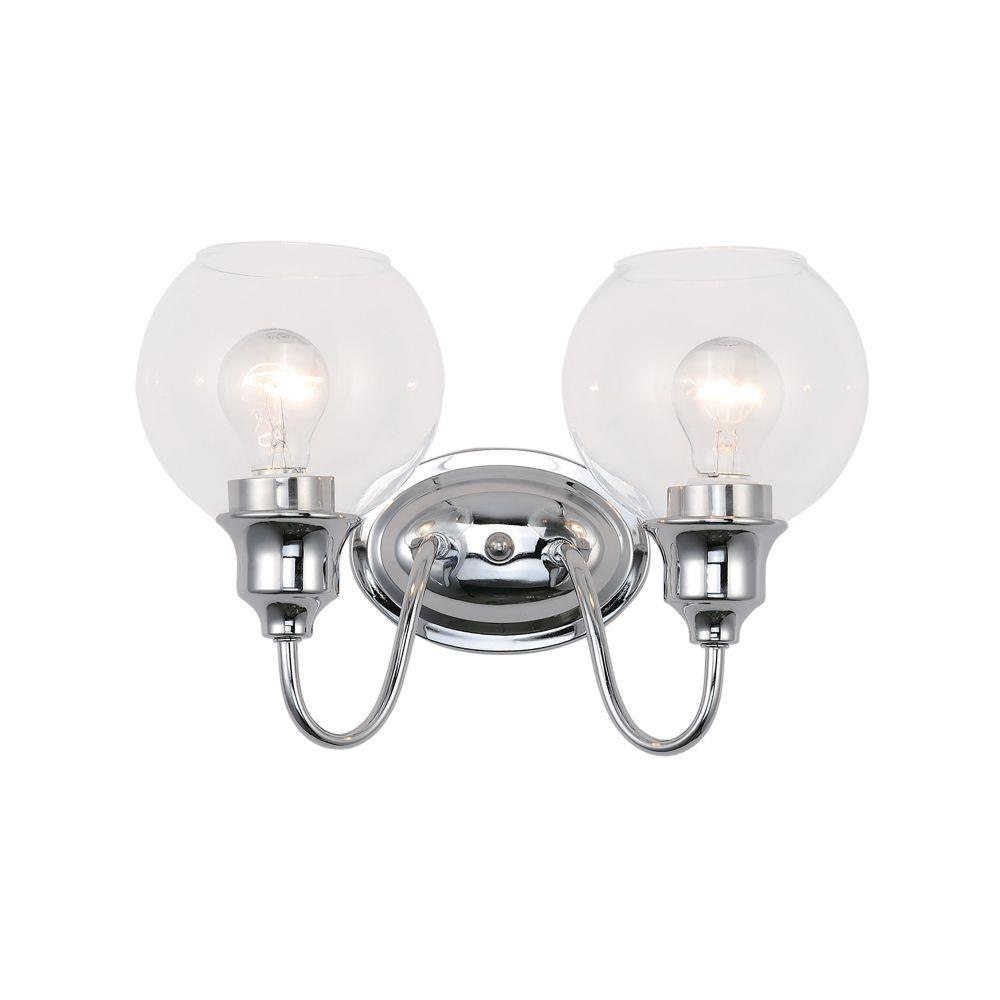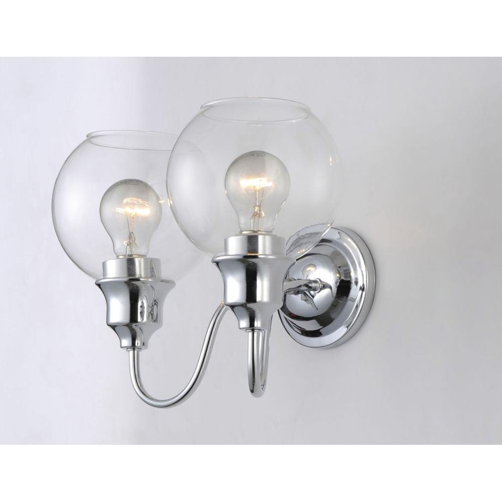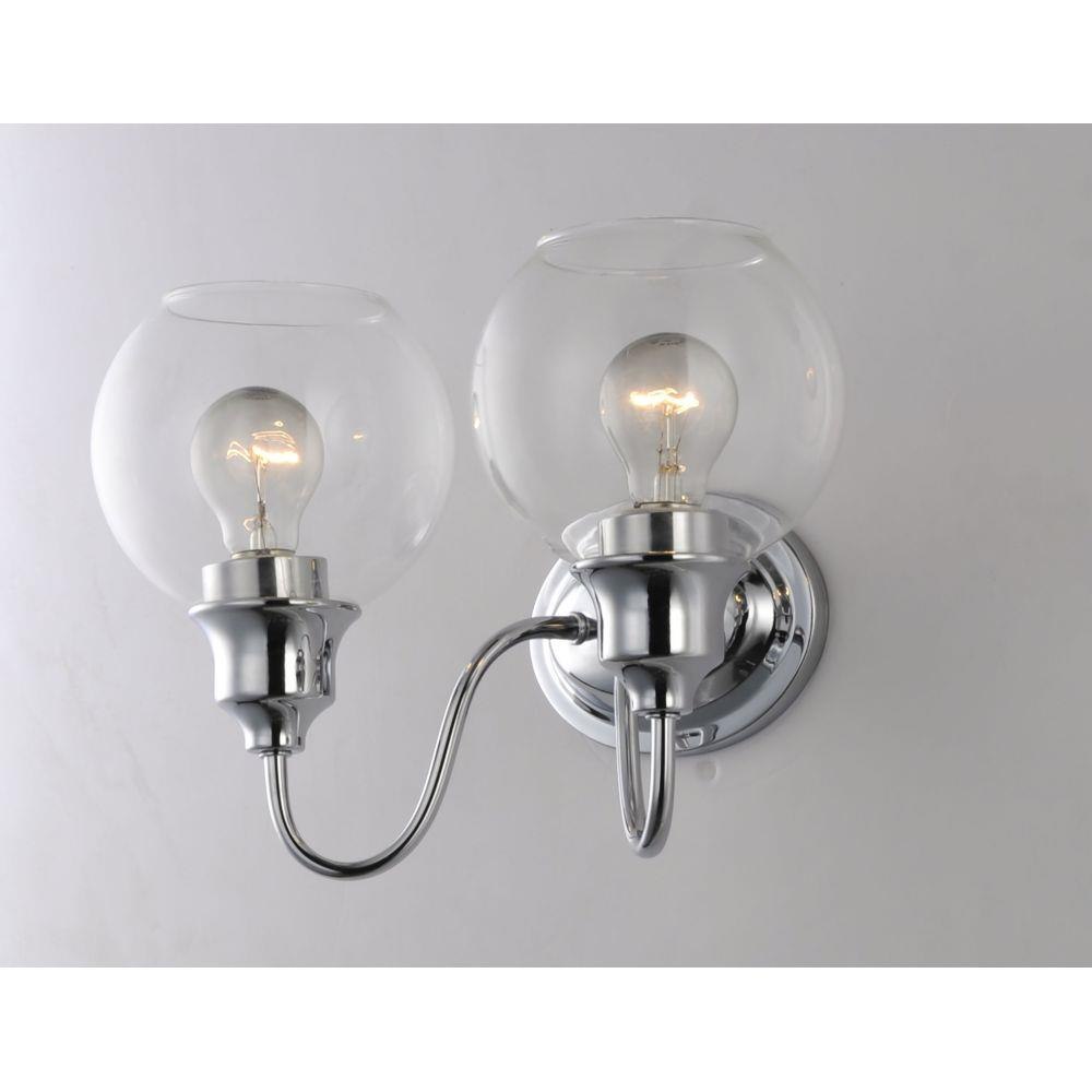 Curved arms support circular glass with an open bottom which can be installed facing up or down. Available in your choice of Polished Chrome with Clear glass or Satin Nickel with Satin White glass.