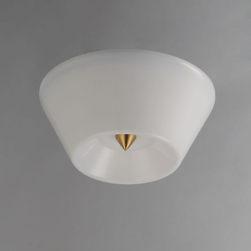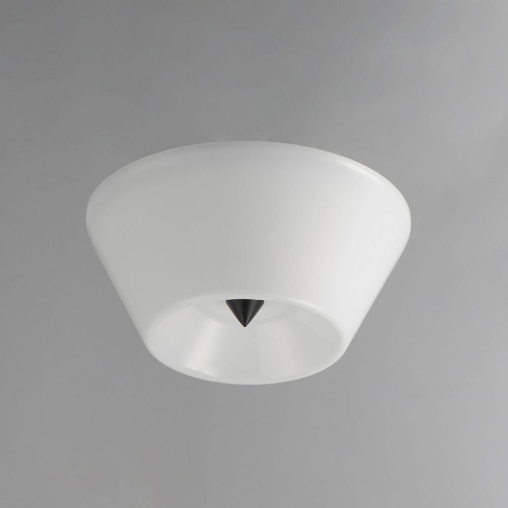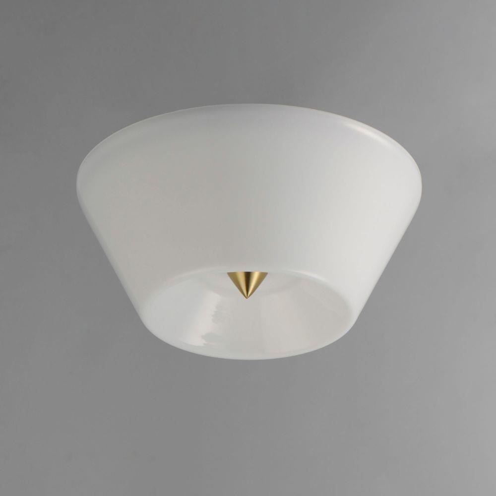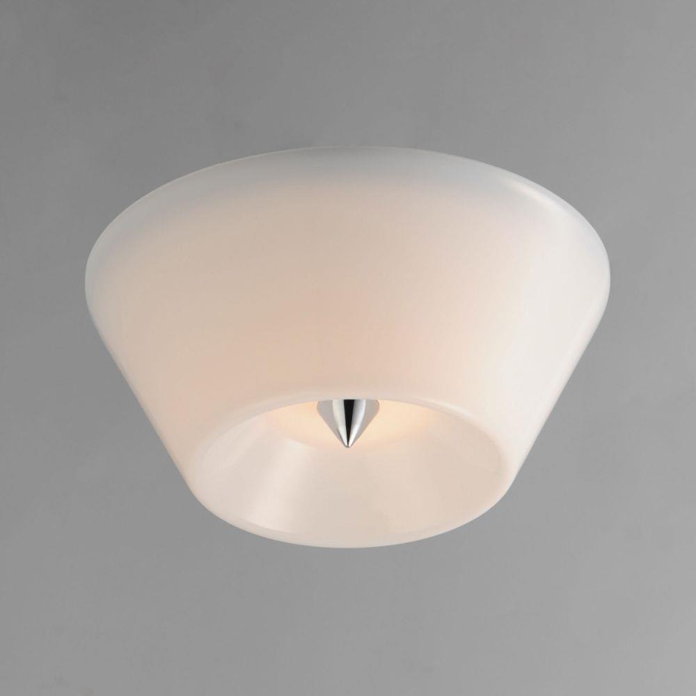 Accentuating the cone shape, this LED surface mounted fixture features a tapered glass shade and is supported by a conical finial in complementary finishes. Available in Polished Chrome, Matte Black, or Natural Aged Brass this simple design adds flair to a simple application.