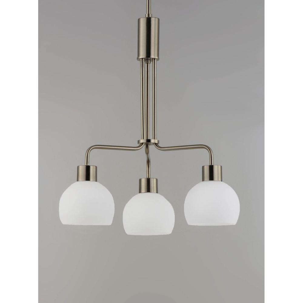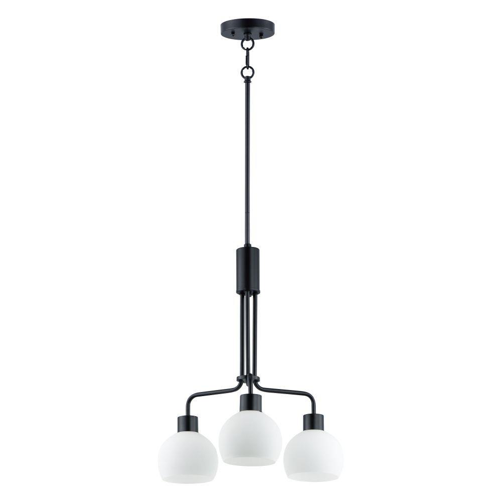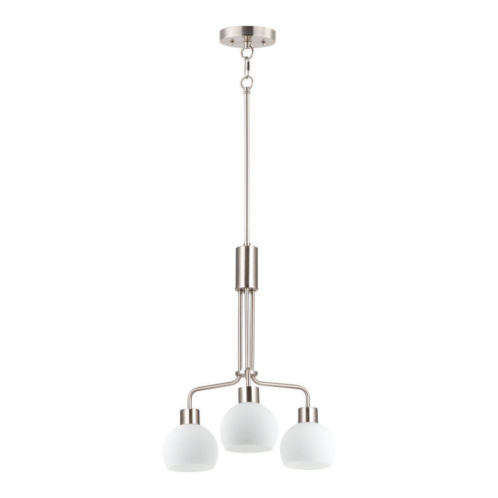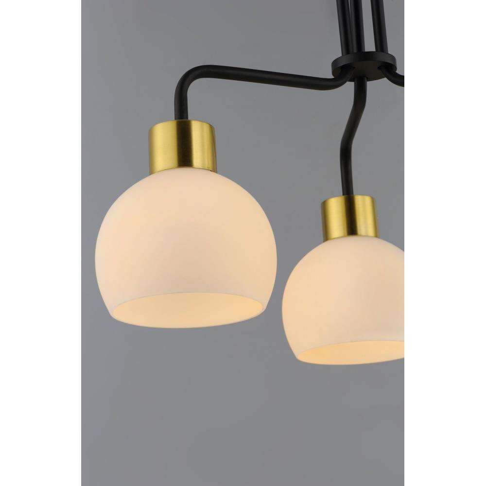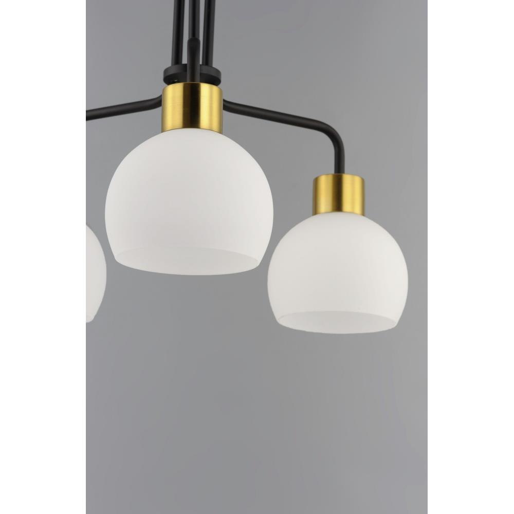 A charming collection of farmhouse inspired design. Satin White glass domes suspend from individually distributed tube arms. Available in Black, Satin Nickel, and a Bronze/Satin Brass combination. This transitional look offers an updated look for both traditional and modern settings.