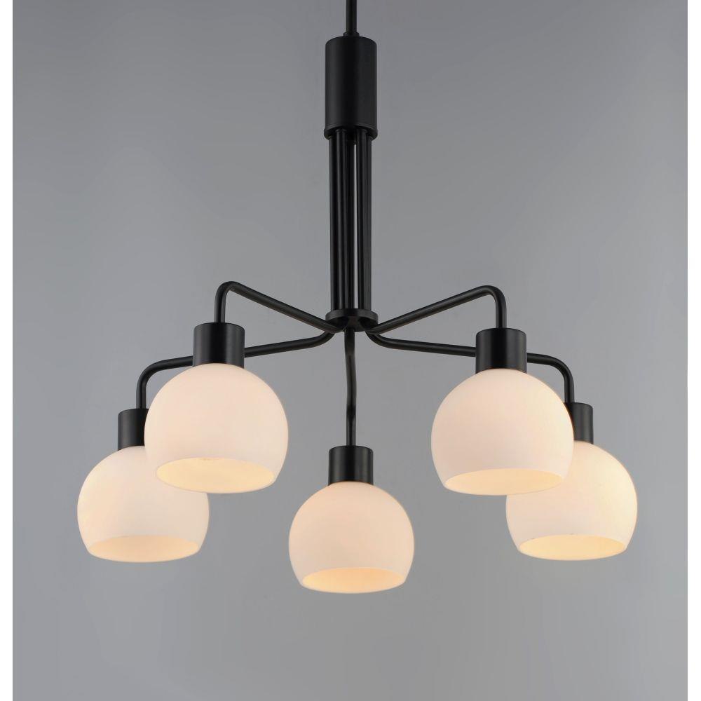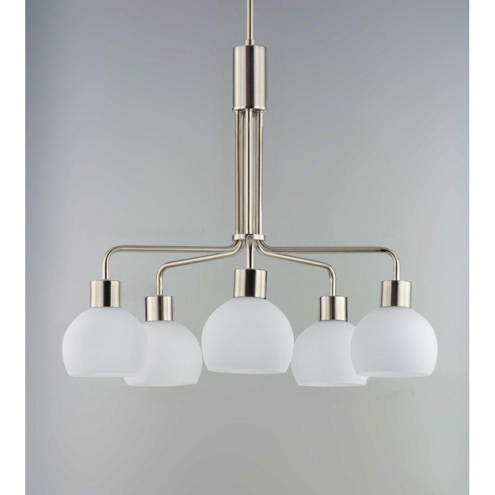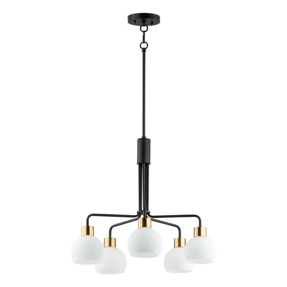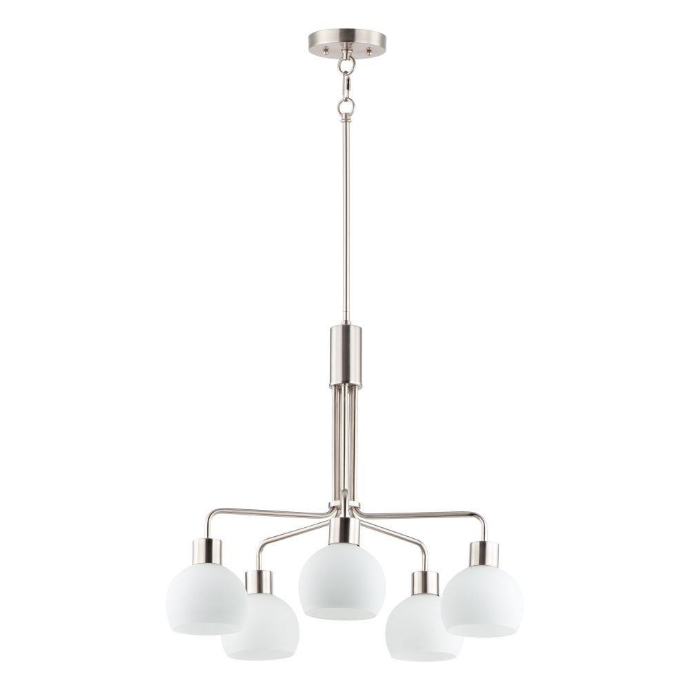 A charming collection of farmhouse inspired design. Satin White glass domes suspend from individually distributed tube arms. Available in Black, Satin Nickel, and a Bronze/Satin Brass combination. This transitional look offers an updated look for both traditional and modern settings.