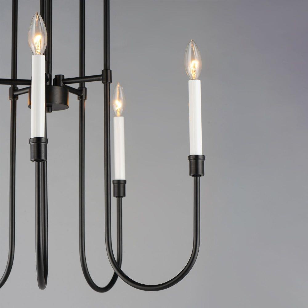 The TUX collection is an elongated minimalist chandelier with sweeping lines evocative of the mid-20th century. The two-tone Black and White finish offers a classic aesthetic, perfect for use in a variety of style categories.
