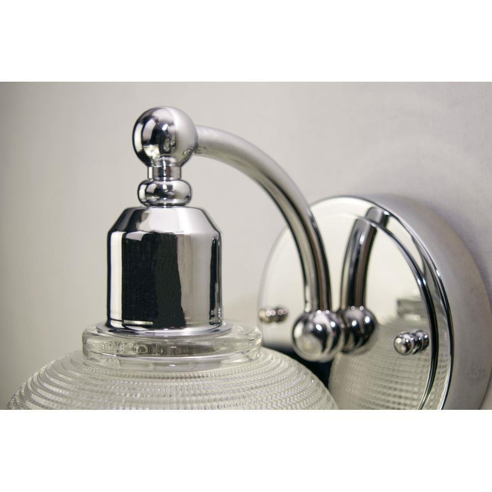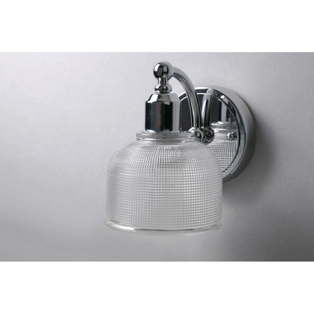 Crisp and clean define this new collection with Polished Chrome frames and Clear, prismatic shades. The geometric pattern of the glass diffuses the glare while providing ample light.