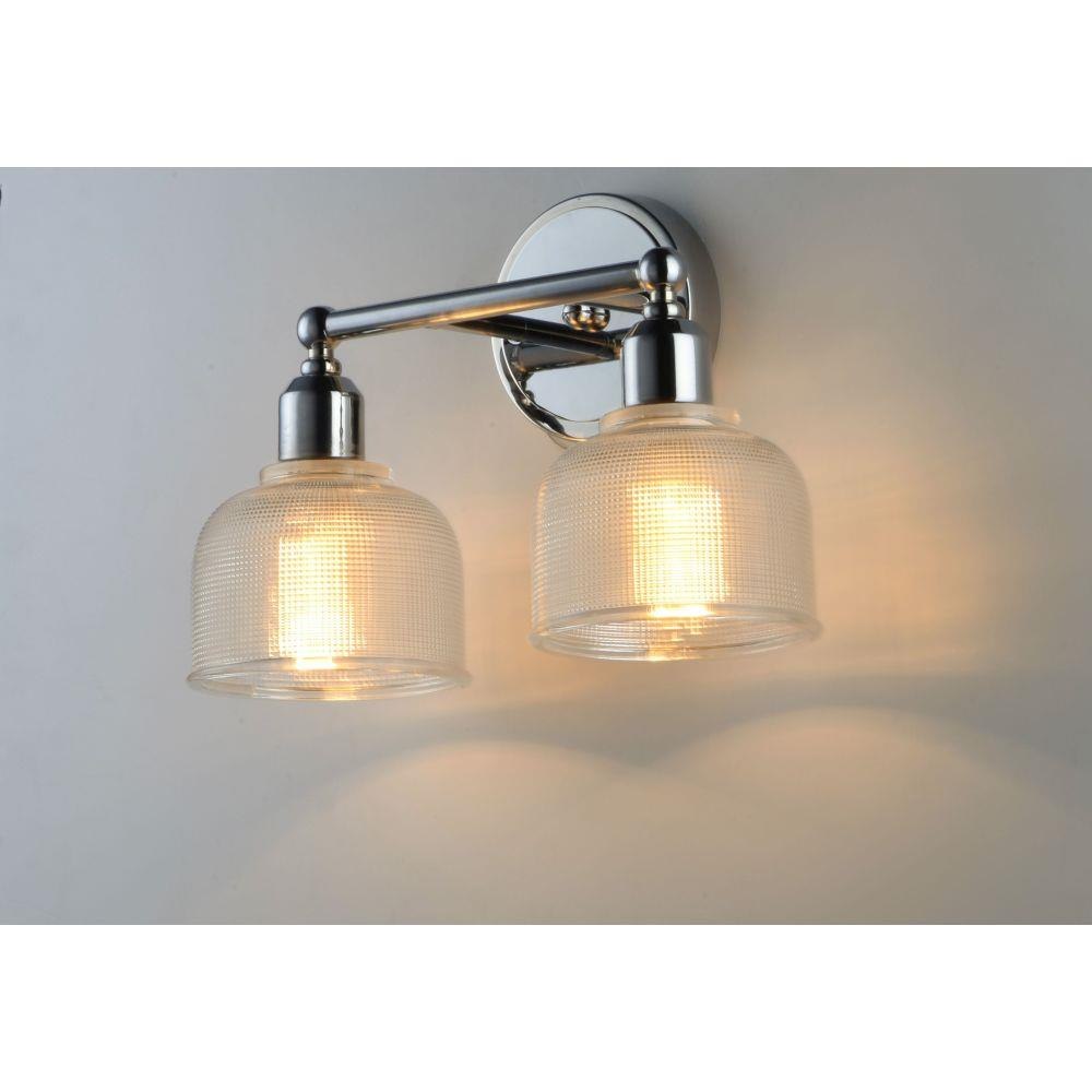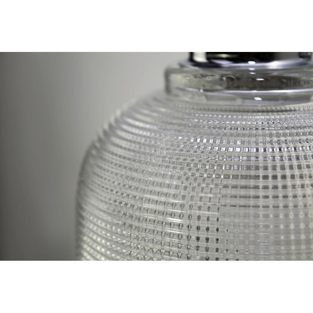Crisp and clean define this new collection with Polished Chrome frames and Clear, prismatic shades. The geometric pattern of the glass diffuses the glare while providing ample light.