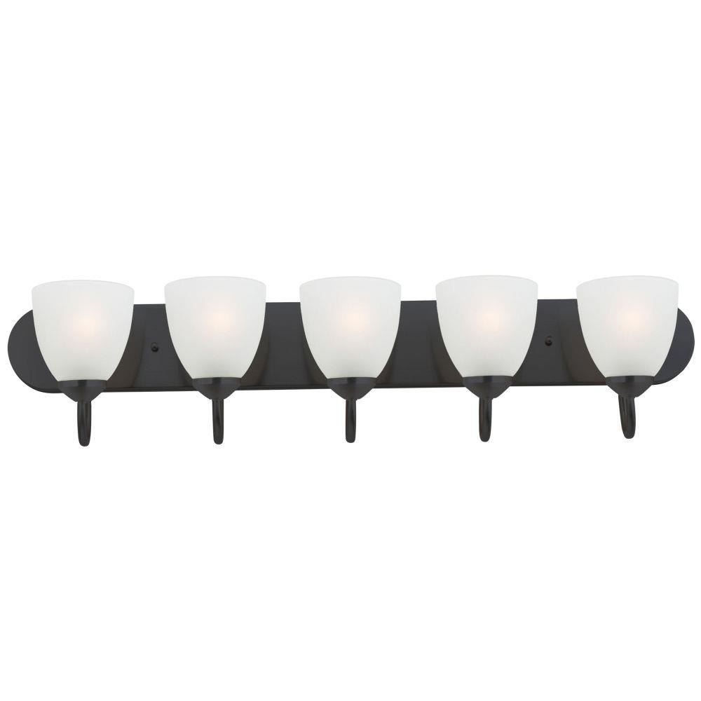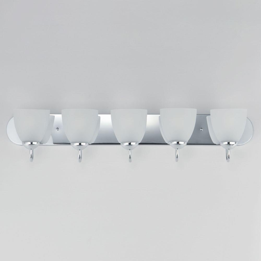This transitional design works in any style home. Full length oval backplates support simple bell-shaped, Frosted glass shades. Available in Satin Nickel, Matte Black, and Polished Chrome.
