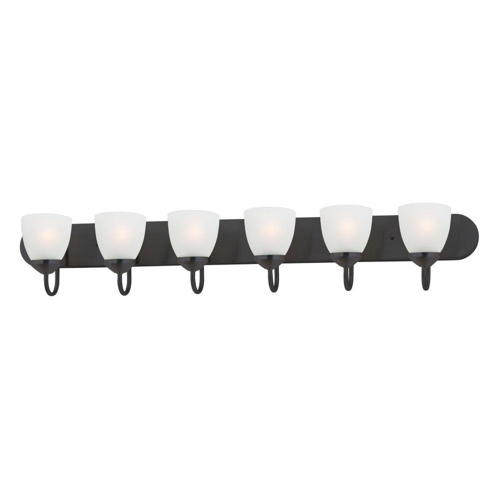 This transitional design works in any style home. Full length oval backplates support simple bell-shaped, Frosted glass shades. Available in Satin Nickel, Matte Black, and Polished Chrome.