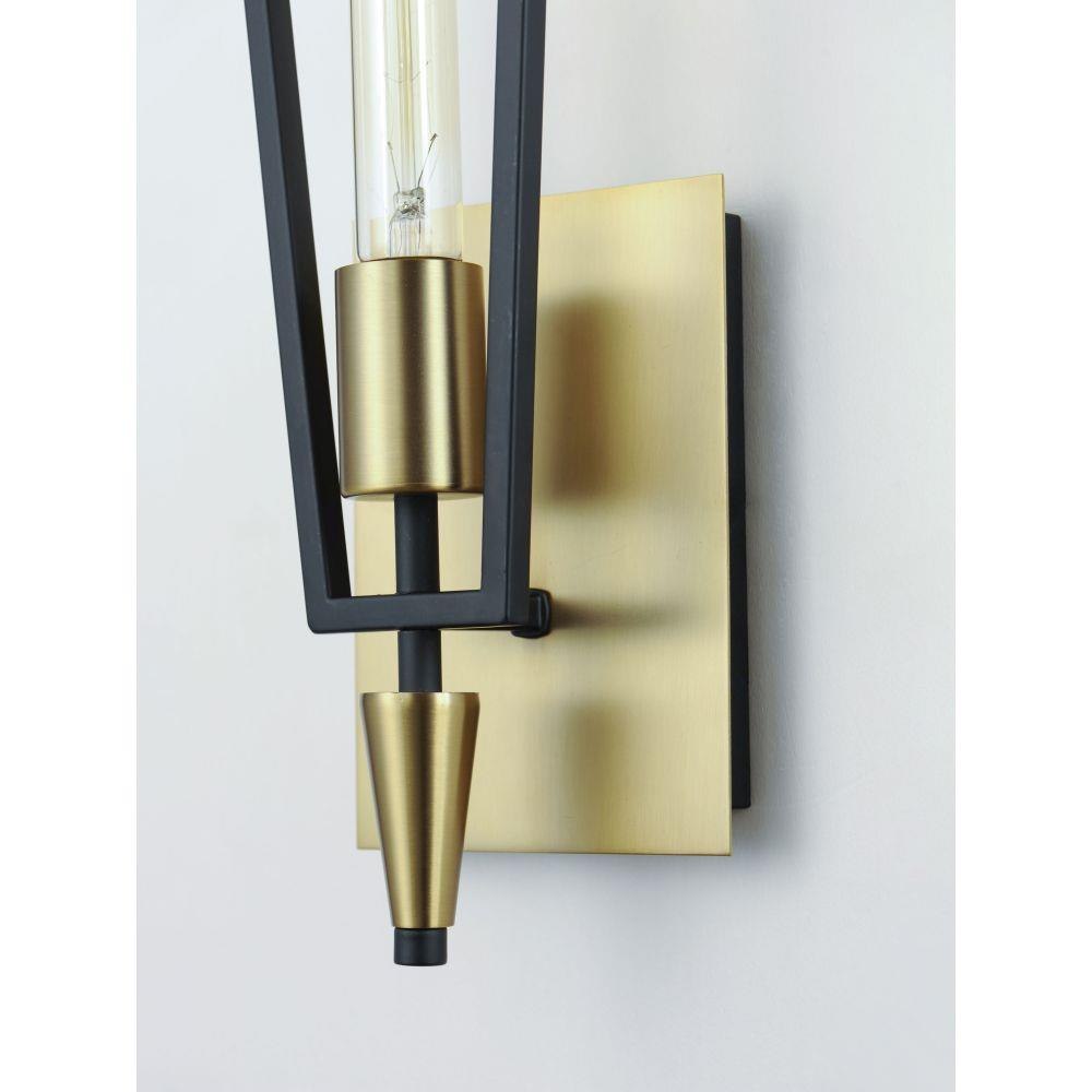 Sharp lines radiate from a pointed pin central body creating geometric angled wings that are sandwiched between matching conical fonts. Finished in a combination Antique Brass and Black, this collection is both contemporary and warm. Complete this look with vintage T10 light bulbs to for the full effect.