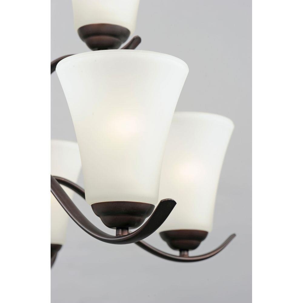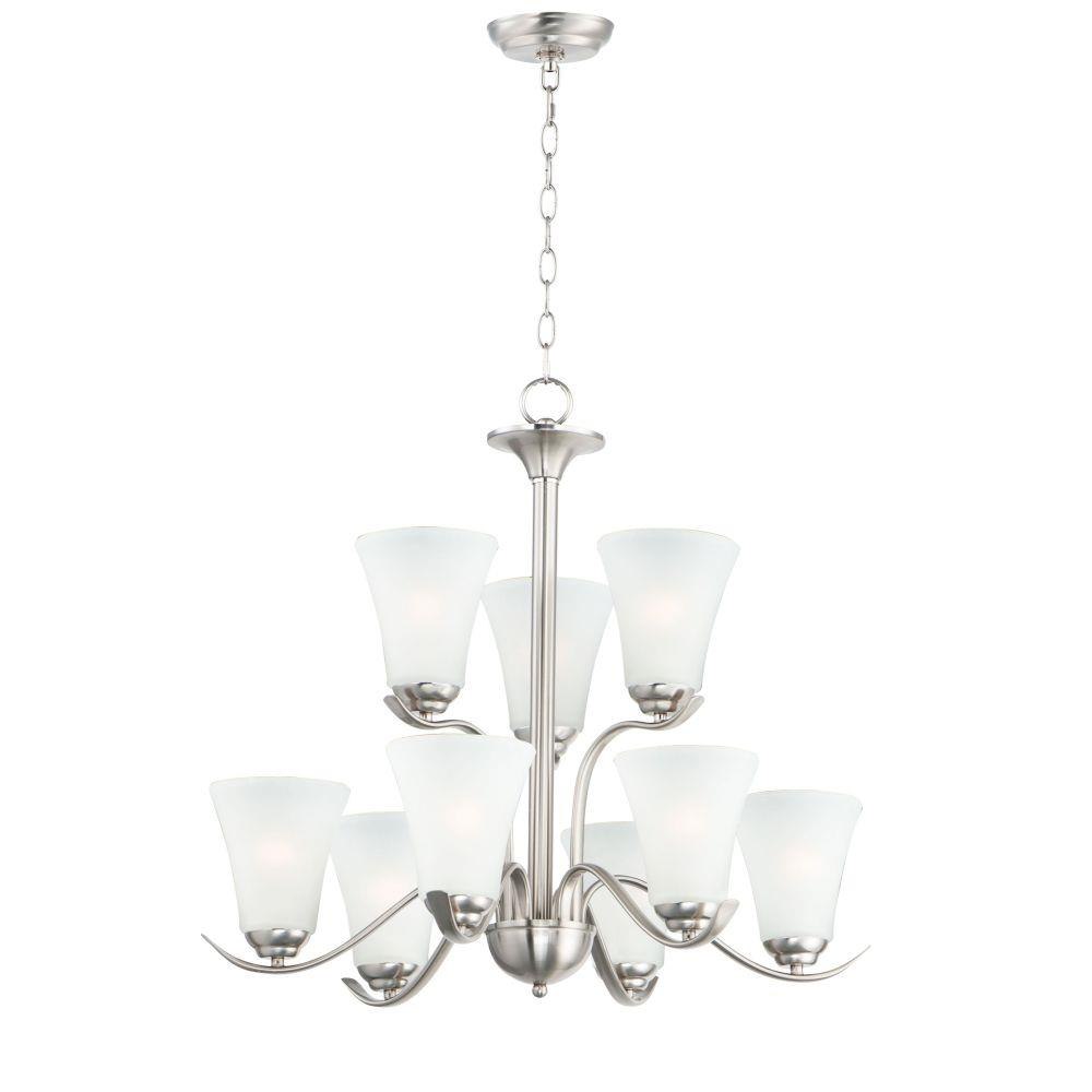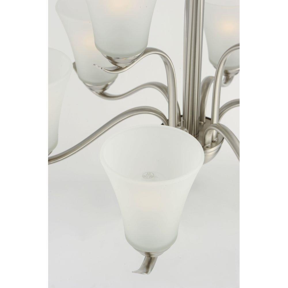 Gently waving arms of Satin Nickel or Oil Rubbed Bronze support tall-profile Frosted glass shades creating a scale normally not found in this category of lighting. The bath vanity may be installed up or down and also includes a Polished Chrome finish.
