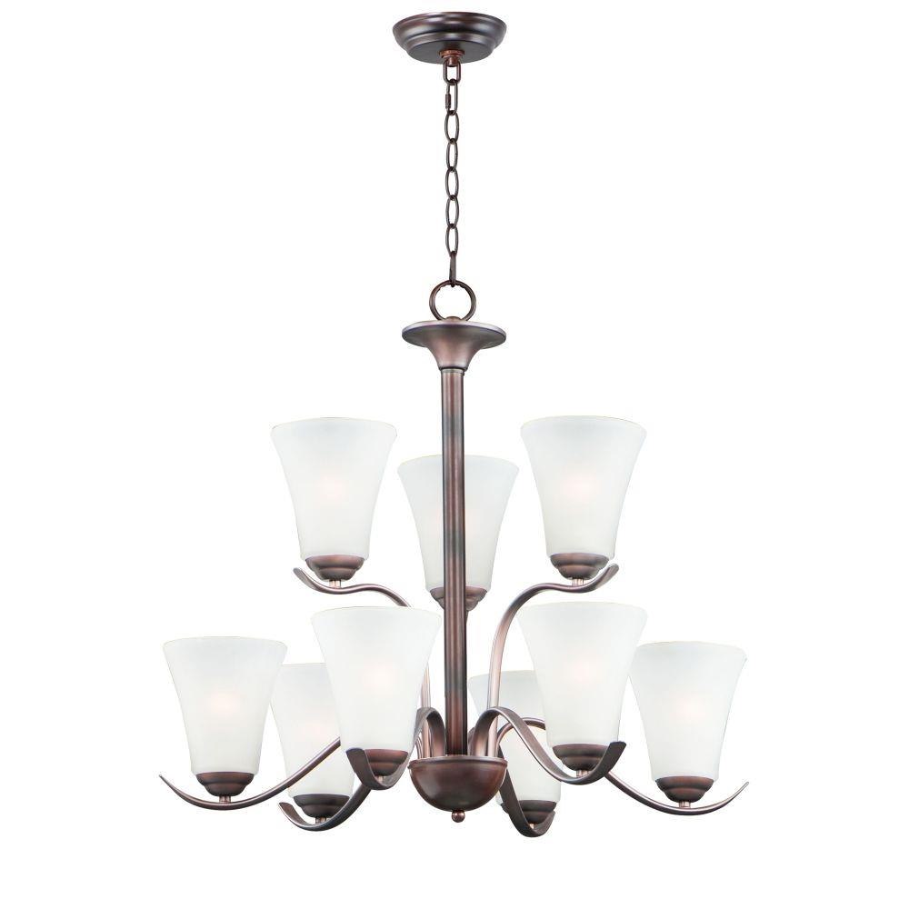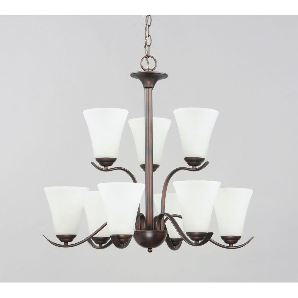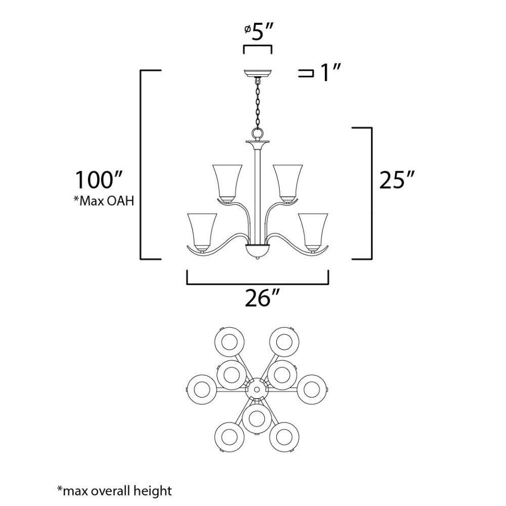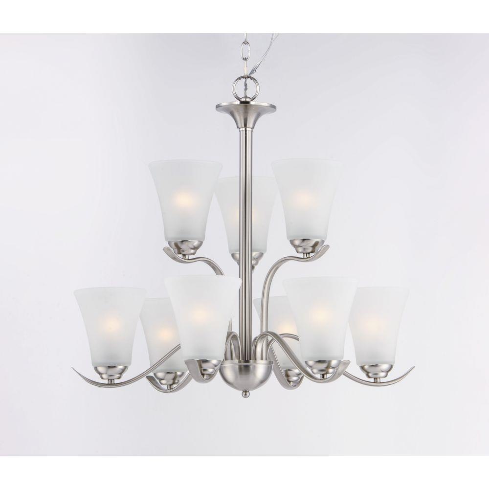 Gently waving arms of Satin Nickel or Oil Rubbed Bronze support tall-profile Frosted glass shades creating a scale normally not found in this category of lighting. The bath vanity may be installed up or down and also includes a Polished Chrome finish.
