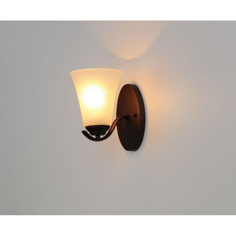 Gently waving arms of Satin Nickel or Oil Rubbed Bronze support tall-profile Frosted glass shades creating a scale normally not found in this category of lighting. The bath vanity may be installed up or down and also includes a Polished Chrome finish.