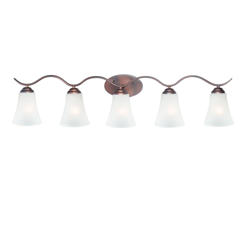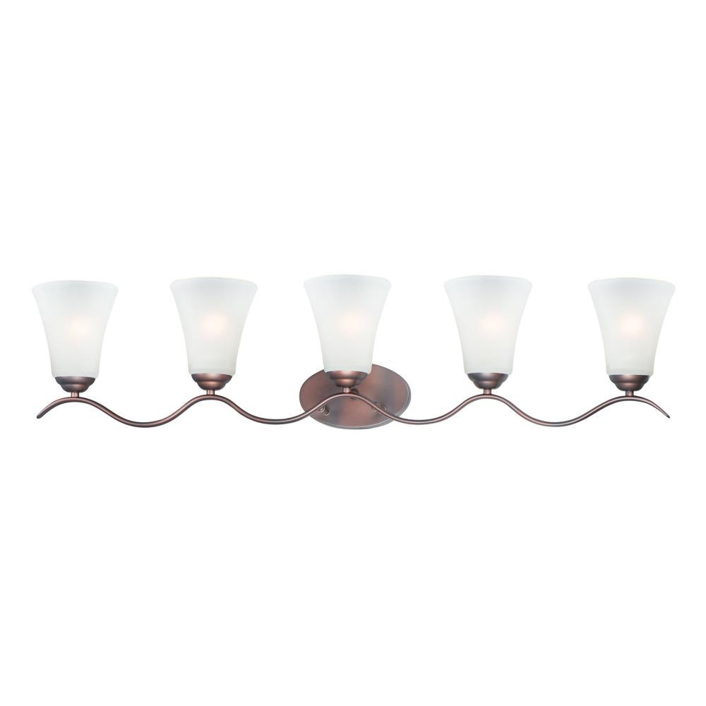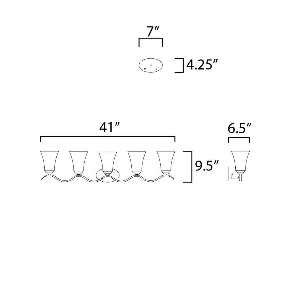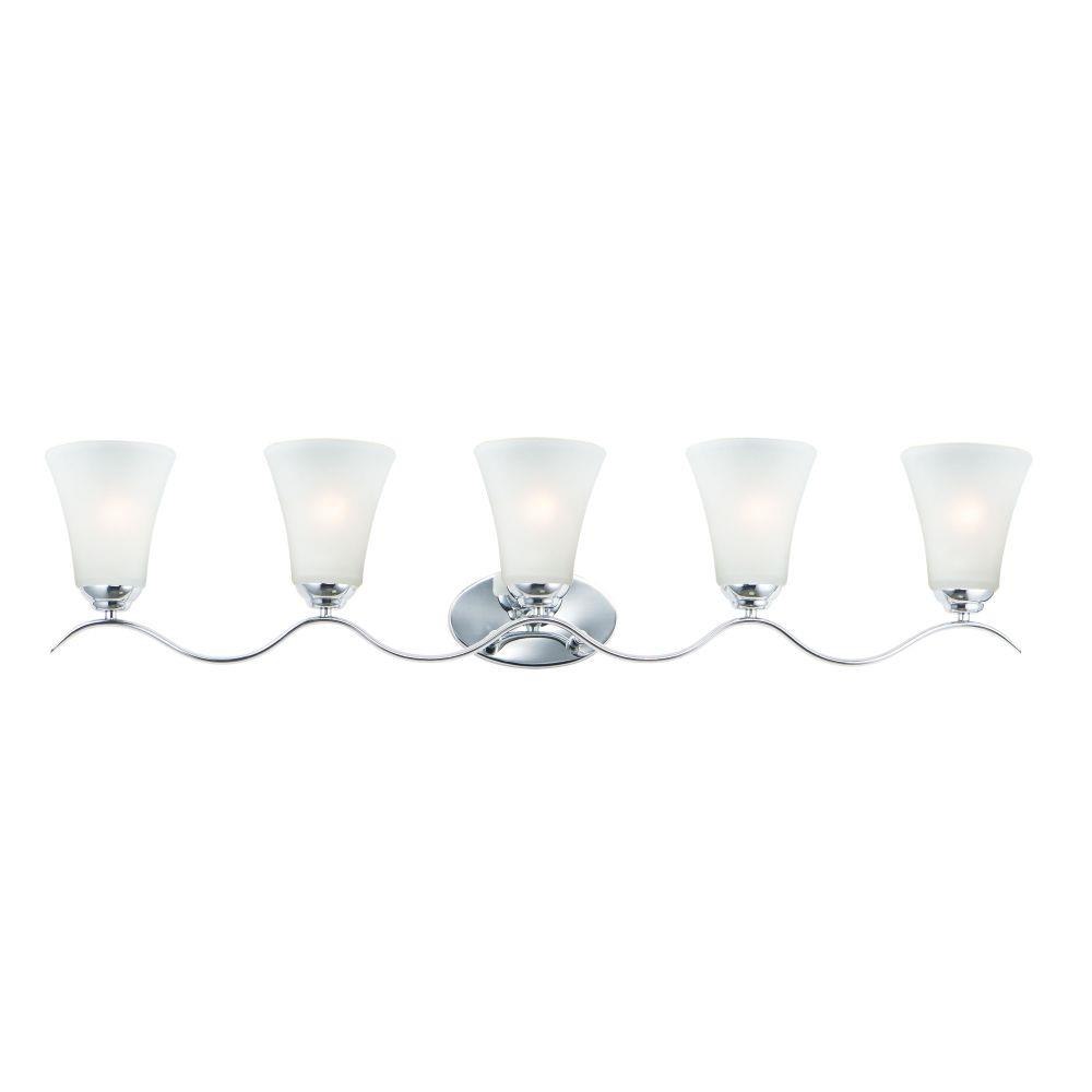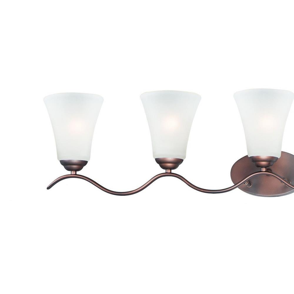 Gently waving arms of Satin Nickel or Oil Rubbed Bronze support tall-profile Frosted glass shades creating a scale normally not found in this category of lighting. The bath vanity may be installed up or down and also includes a Polished Chrome finish.