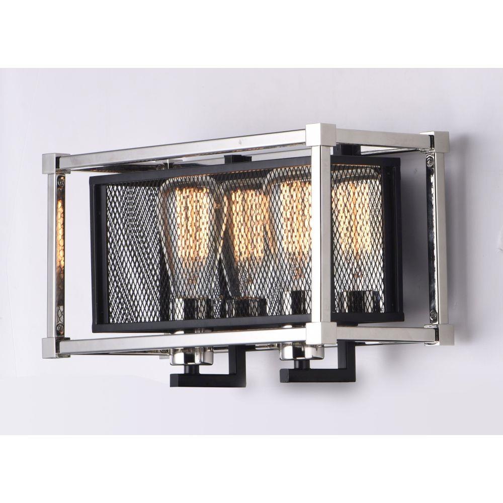 Industrial meets contemporary in this striking collection. Metal mesh finished in a matte Black gives amazing contrast to the Polished Nickel frame. This refined design gives that element of uniqueness to any room decor.