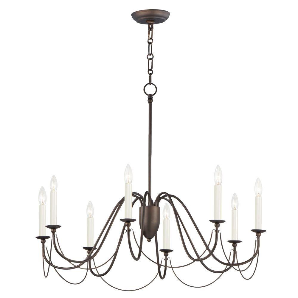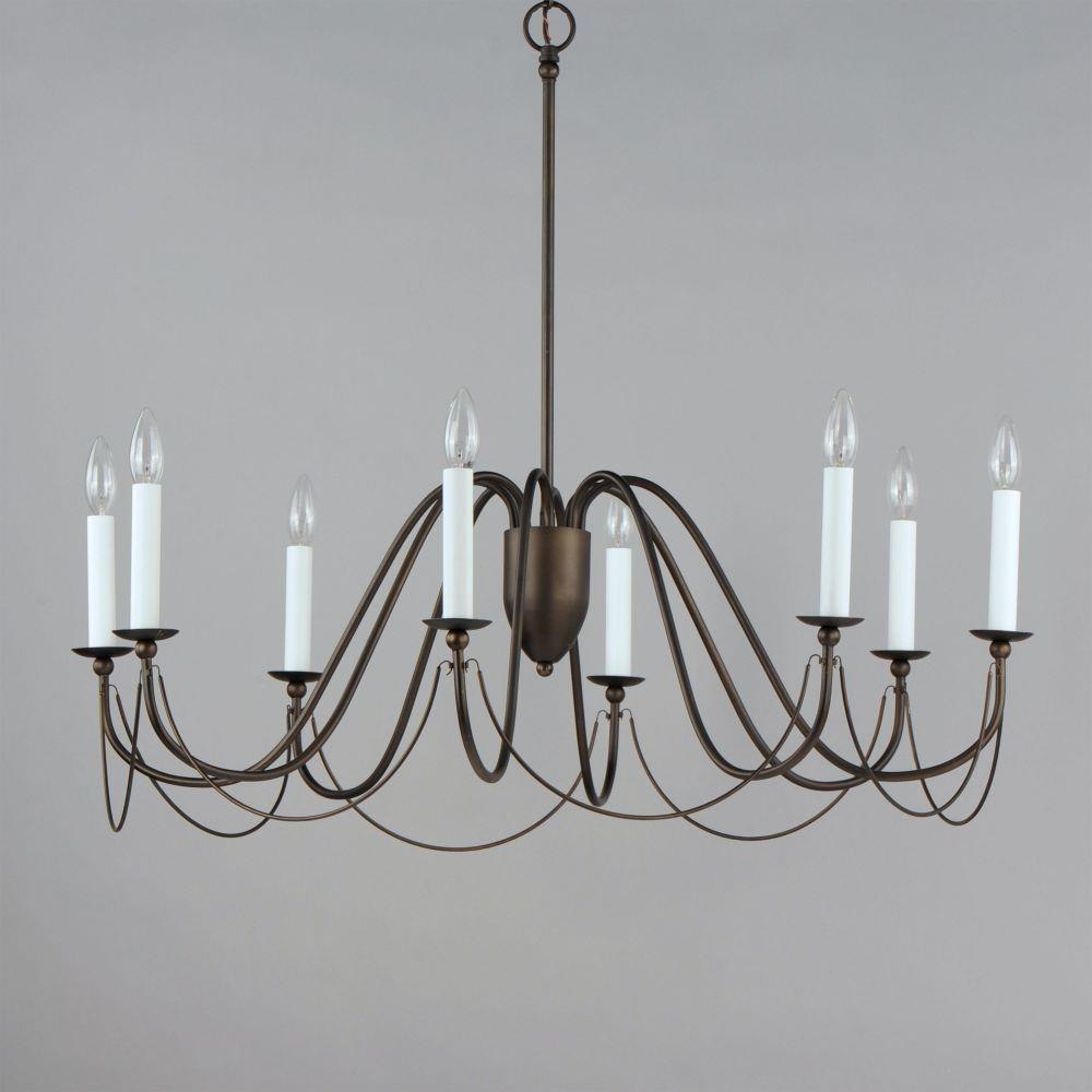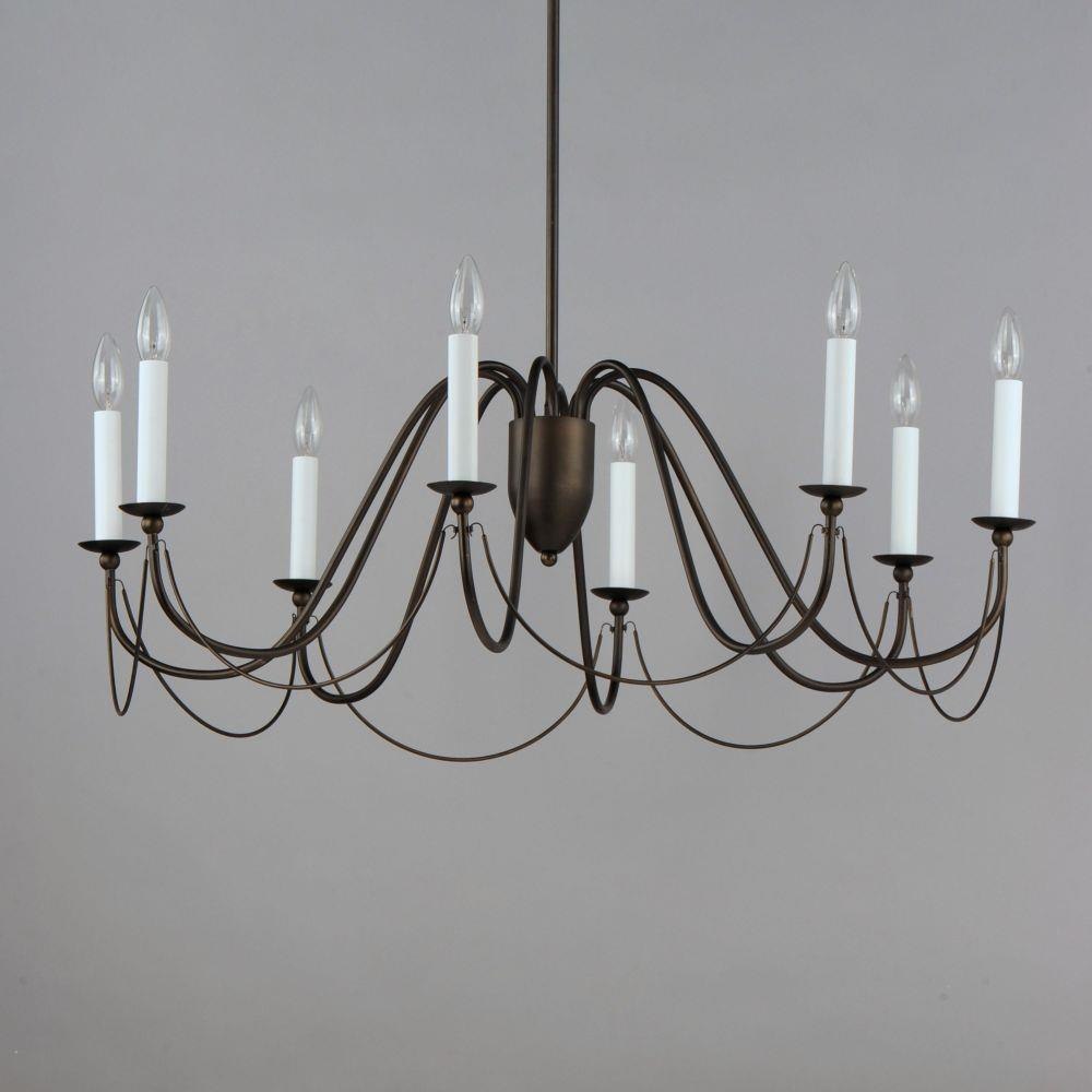 Sweeping metal accents links create classic curves on a minimalist chandelier. Available in hand-rubbed Chestnut Bronze or elegant Gold Leaf finishes. Add crystal accents to elevate the design for a more extravagant glamour. The design manages to evoke French Country charm and enchants any room it illuminates.