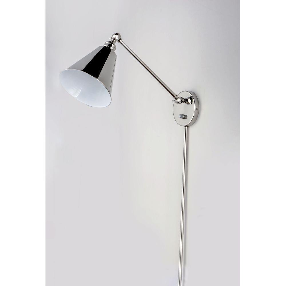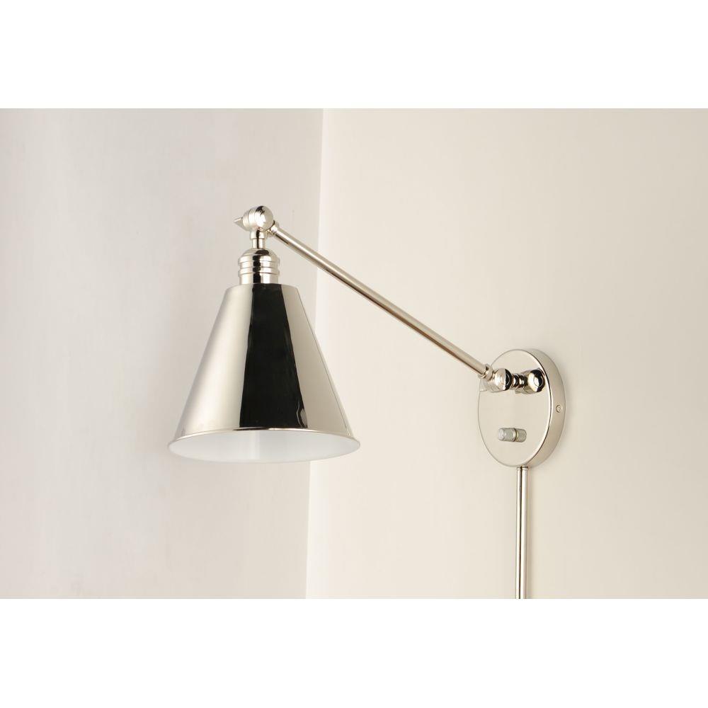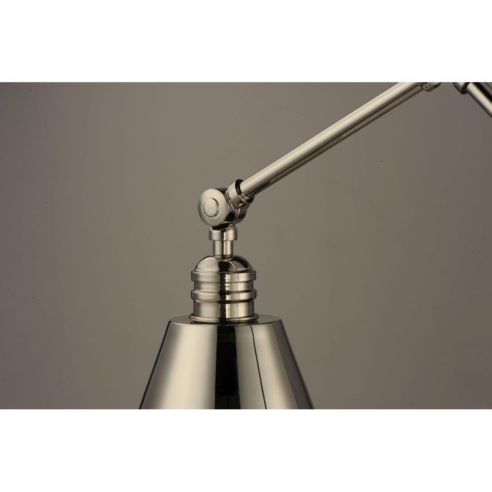 Direct the light exactly where you want it using the articulated arms and metal shades of the Library series. At the backplate, the arm pivots left/right and up/down to direct the light. Additional articulated arms angle the shade or extend/contract the distance of the light source from the wall. Available in Polished Nickel, Black and Heritage Brass finishes, the Library collection evokes industrial era classicism perfect for use as a task light or accent light. Complimentary table and floor lamps complete the collection.
