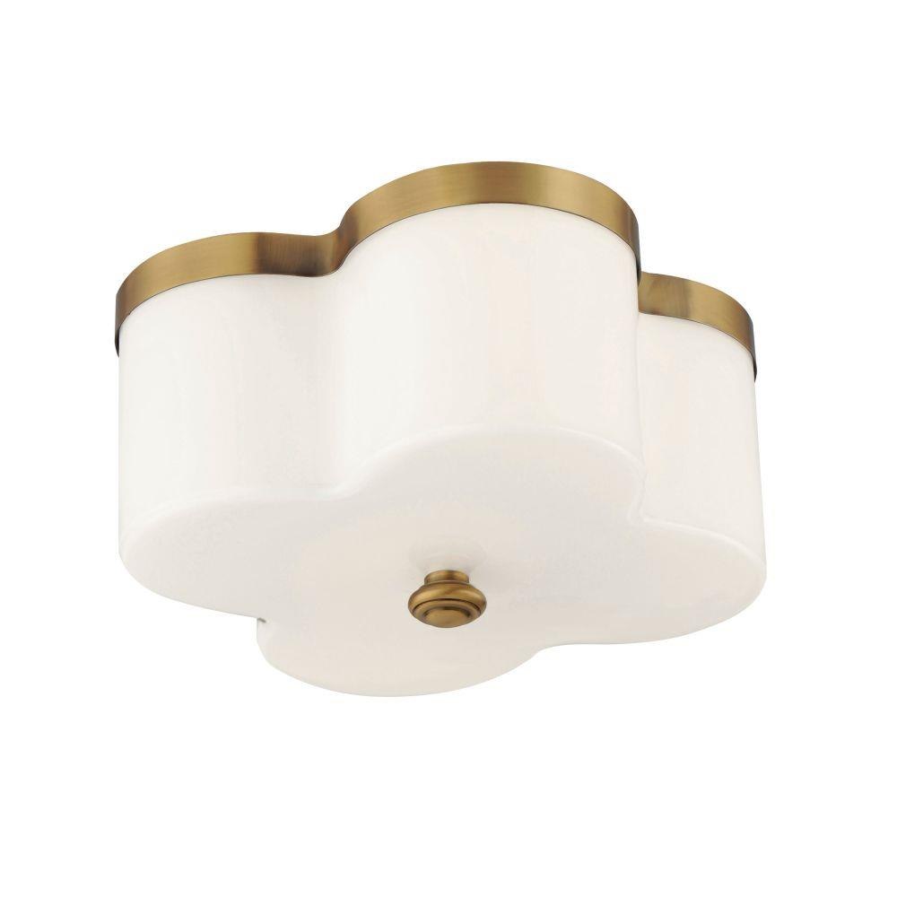 Honoring the traditional scalloped shade design in a range of materials, flush mounts are available in your choice of fabric, metal, or glass shades. The fabric shade features an Off-White linen fabric and is accented with Aged Brass metalwork. In the glass iteration, opal white glass features glossy elegant appeal with metal accents in Natural Aged Brass or Dark Bronze. The final iteration of metal shades has a white glass diffuser and metalwork finished in Polished Nickel or Natural Aged Brass.