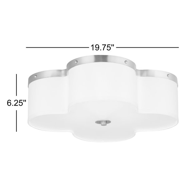 This 4-light drum flush mount showcases a quatrefoil fabric shade and is sure to infuse your space with both ambient lighting and a pop of posh. It is accented with metal and rivets that have a satin brass finish. As it suspends just 6.25", it is a good choice for a room with low ceilings. We love this light fixture in an entrance hall, kitchen, or study. We also love that it is dimmer switch compatible and sloped ceiling adjustable, opening up multiple options for placement. This fixture requires four 60-watt bulbs, not included. Hand-curated by Kelly Clarkson Home