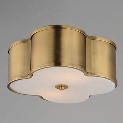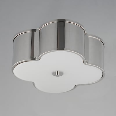 The Clover 2-Light Flush Mount elevates any space with its traditional scalloped shade design, available in fabric, glass, or metal. This versatile fixture combines classic elegance with modern functionality, making it a striking addition to your home.