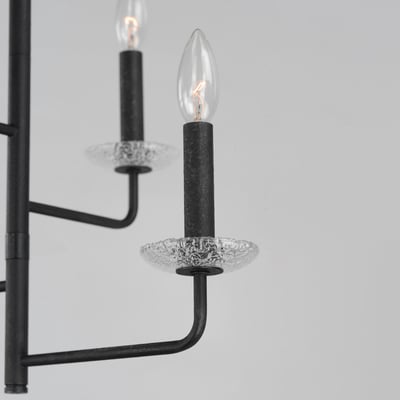The Madeira Chandelier by Maxim Lighting offers a modern take on traditional wrought iron chandeliers, inspired by the coastal cities of Spain and Portugal.