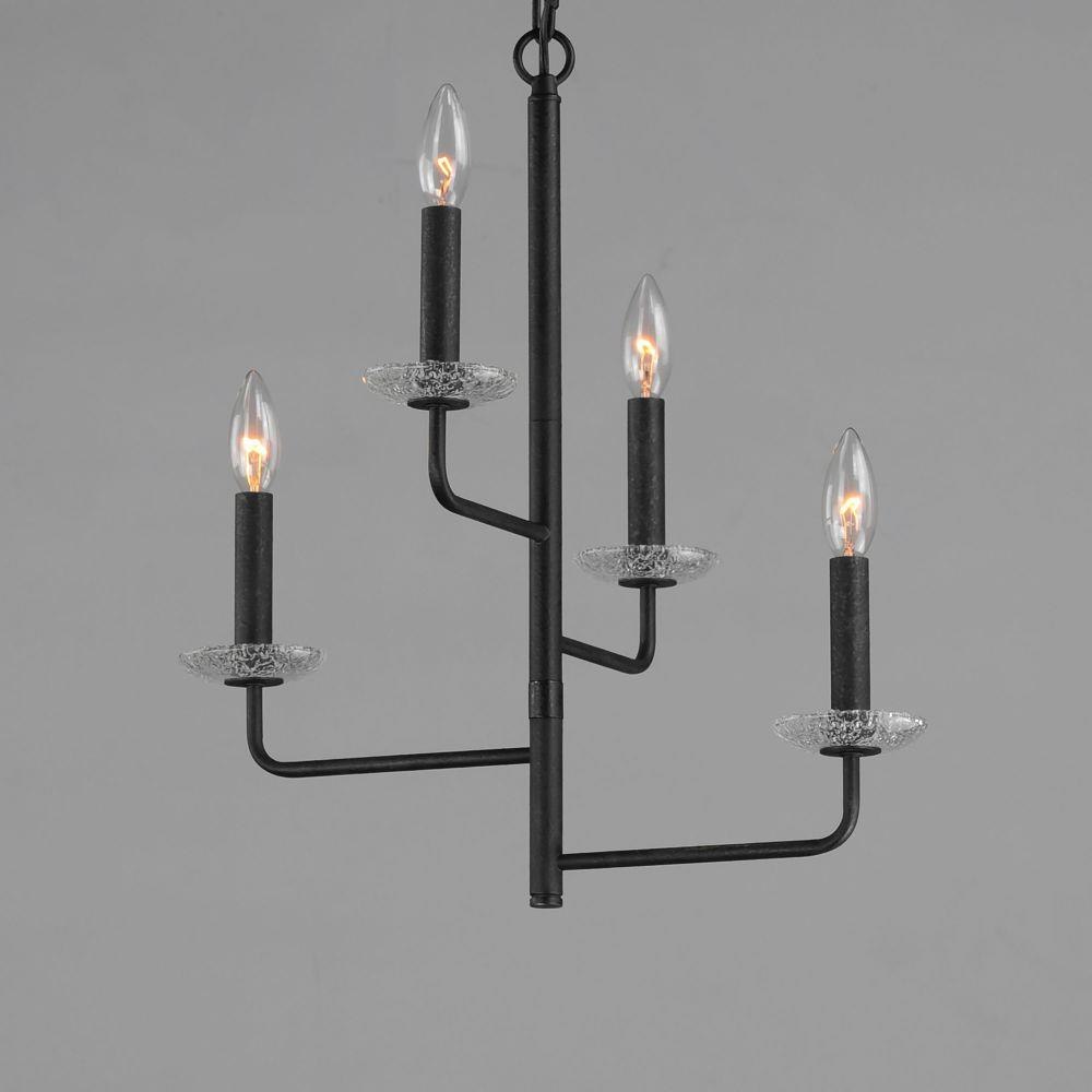 A modern interpretation of wrought iron chandeliers, the Madeira collection evokes the spirit of Spanish and Portugese coastal cities. Articulating arms finished in a textured Anthracite finish create a cascading candelabra concept with Clear Textured glass bobeches. Available in various sizes and configurations as well as a coordinating wall sconce to create the perfect ambiance for siesta.