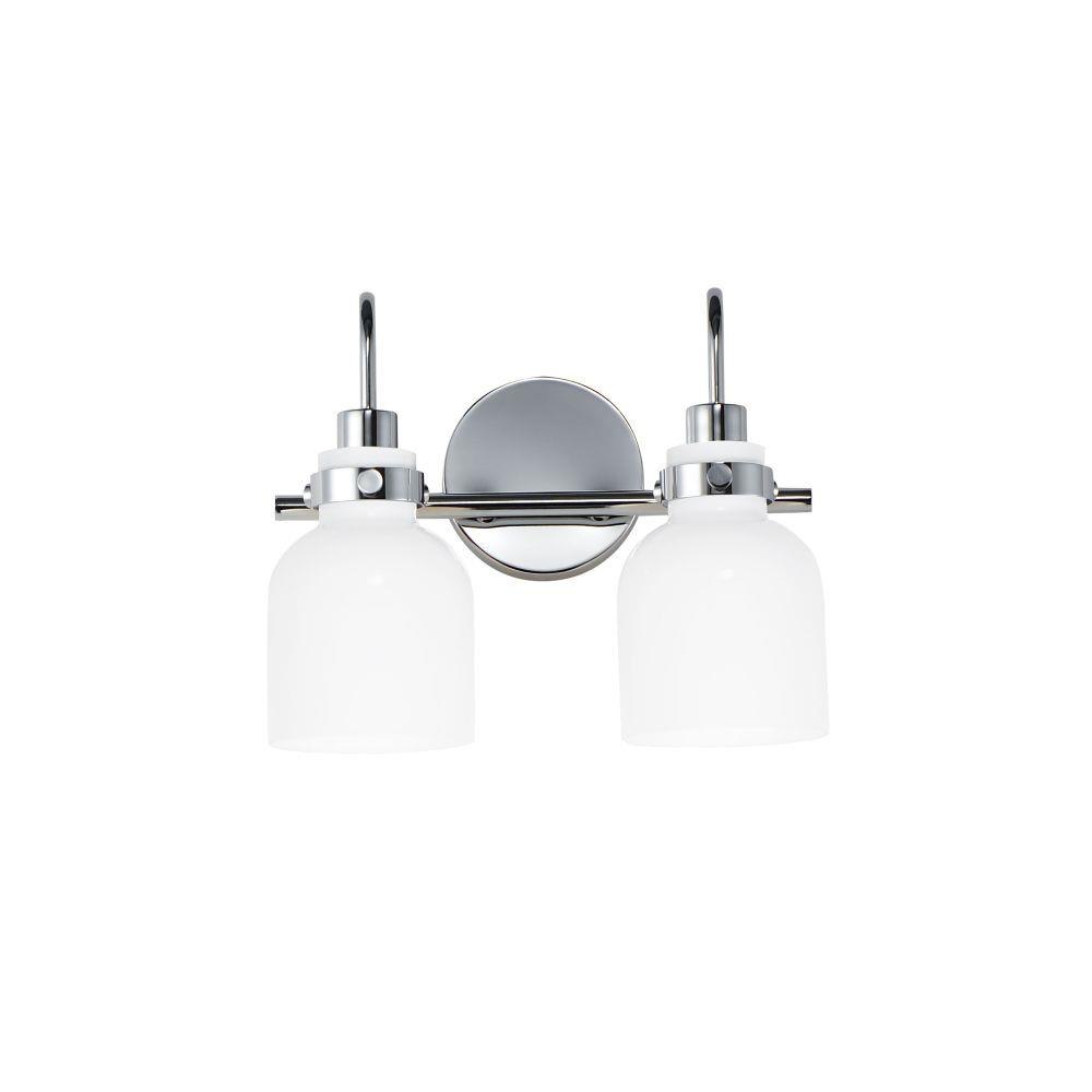 Celebrate nostalgia using these sconces that feature opal White glass shades in a bell shape. Supported on rings of metal in your choice of Polished Chrome or a bolder two-tone Black and Satin Brass, this refreshing take plays into a retro aesthetic of your bathroom decor. Available in various lengths of bath vanity lights or single sconces.