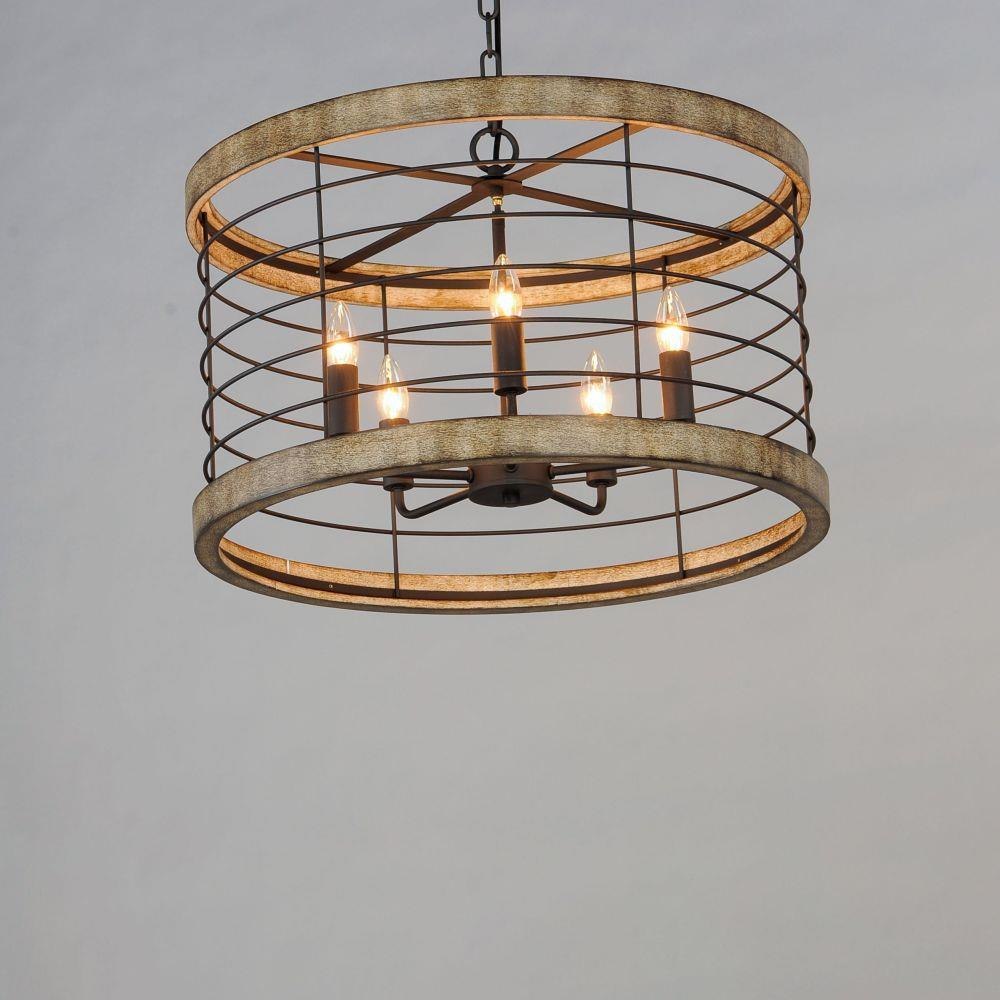 A modern blend of metal and wood is the perfect way to bring a little slice of rustic decor to any room. Exposed lamps are caged in a black metal framework and accented with distressed wood tones bringing this design out of the barn and into the 21st century. Use vintage filament lamps to enhance the overall look.