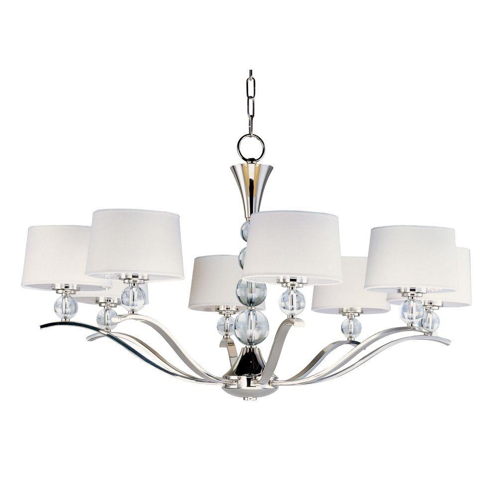 Exemplary transitional styling, the Rondo collection takes a classic shaded design and updates it with contemporary finishes and delightful glass orb details. The sharpness of the Polished Nickel frame is softened with the use of round crystal glass balls. The White hardback fabric shades are fit with frosted diffusers so the light is even and soft while concealing the bulb.