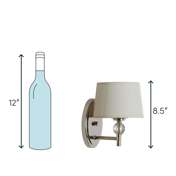 Something we love about this 1-light armed sconce is how it spreads a warm glow over your bathroom vanity mirror or nightstand in the master suite. Available in a variety of classic finishes so you can make it your own, the backplate has a molded circle silhouette, and the short, straight arm holds the tiered light in place. A transparent crystal ball accent finishes out the design with some brilliant shine, while a white fabric tapered drum shade diffuses soft light throughout your space. Hardwired and UL-listed for safe use in bathrooms, this light accommodates 60W incandescent bulbs, but you'll need to buy those separately.