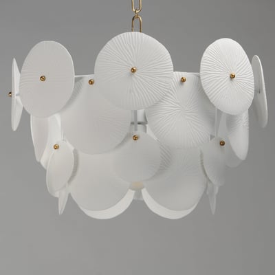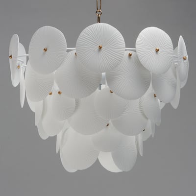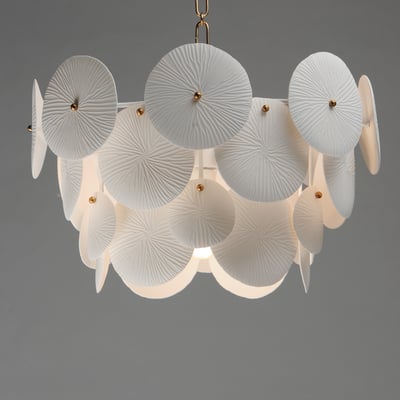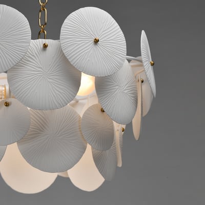 The Isla Chandelier showcases a captivating blend of modern design and coastal inspiration. With its suspended tiers of textured ceramic panels, this piece diffuses light beautifully, creating an inviting ambiance in any room.