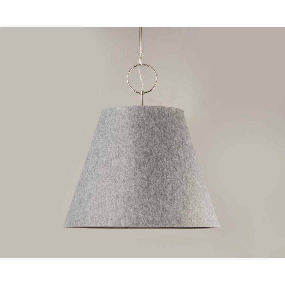 Theses large scale shades are constructed of sound absorbing felt reducing ambient noise in the environments where they are hung. Available in either Black with Polished Nickel or Grey with Satin Nickel, the Felt pendants include an opal glass interior globe shade to cover either LED or incandescent lamping.