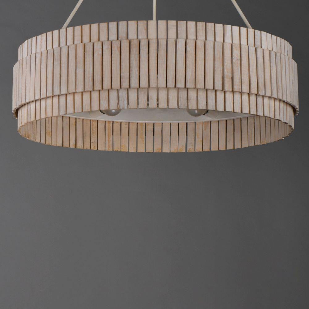 Crafted from sustainable bamboo, this lighting collection elevates the classic drum shade design with handcrafted, natural materials. The bamboo slats are thoughtfully spaced to allow light to filter through, creating a warm and inviting ambiance. Finished in a whitewashed, hand-brushed finish, both the pendant and coordinating sconce feature neutral tones that seamlessly complement a variety of interior styles.