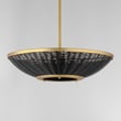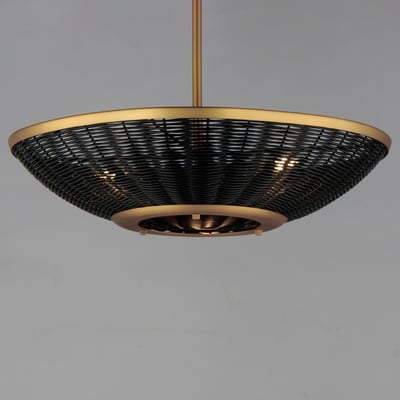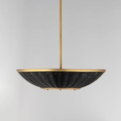 The Rattan Bowl Pendant enhances your space with its unique hand-woven design and versatile functionality. Crafted from blackened rattan and complemented by a Natural Aged Brass frame, this fixture brings a nostalgic yet contemporary touch to any room.