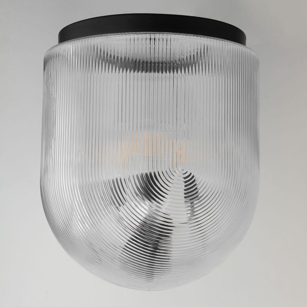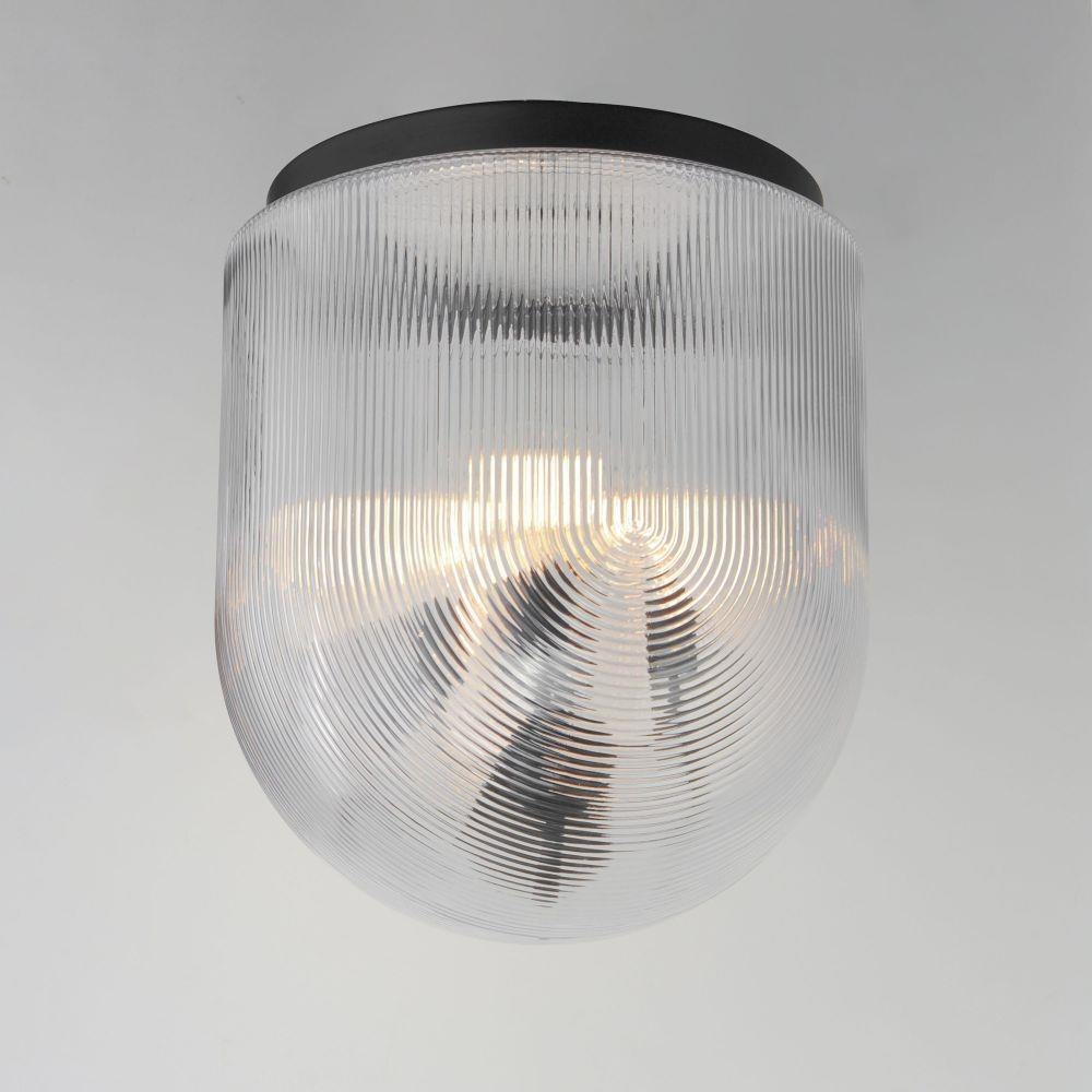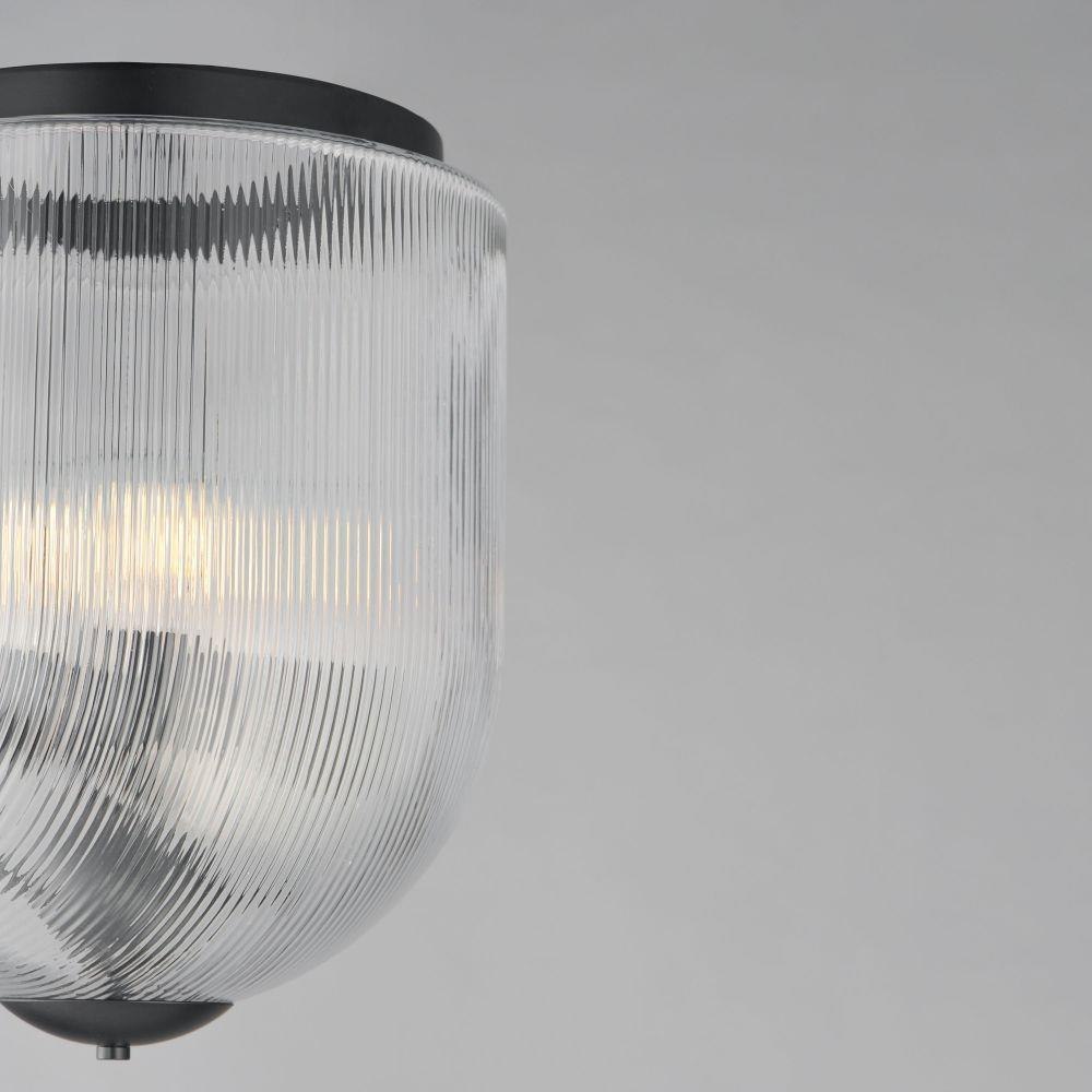 Featuring a concentric, semicircular ribbed glass pattern, this collection offers a blend of familiar design with contemporary flair. The deeply textured glass refracts light beautifully, diffusing glare while delivering ample functional illumination. Metal accents in a Matte Black finish enhance the modern aesthetic. Available in oversized pendant and flush mount configurations, the collection is ideal for larger spaces, combining bold design with practicality.