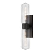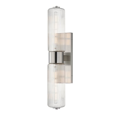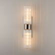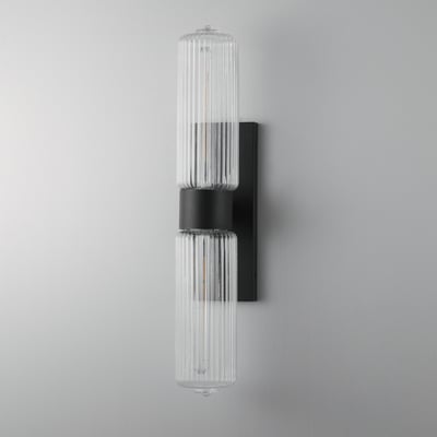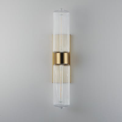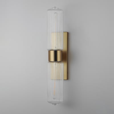The Kasbah Double Light Wall Sconce enhances your space with its nostalgic design and elegant illumination. Featuring ribbed glass volumes and a unique dipped bottom, this fixture blends retro charm with modern functionality.