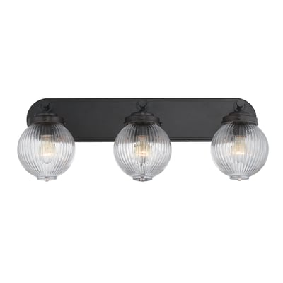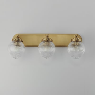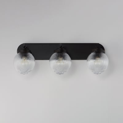 The Kasbah Multi-Light Bath Vanity elevates your space with its nostalgic spherical glass design, featuring a ribbed pattern and a unique dipped flat bottom. This collection seamlessly blends retro charm with modern functionality, making it an ideal choice for various settings.