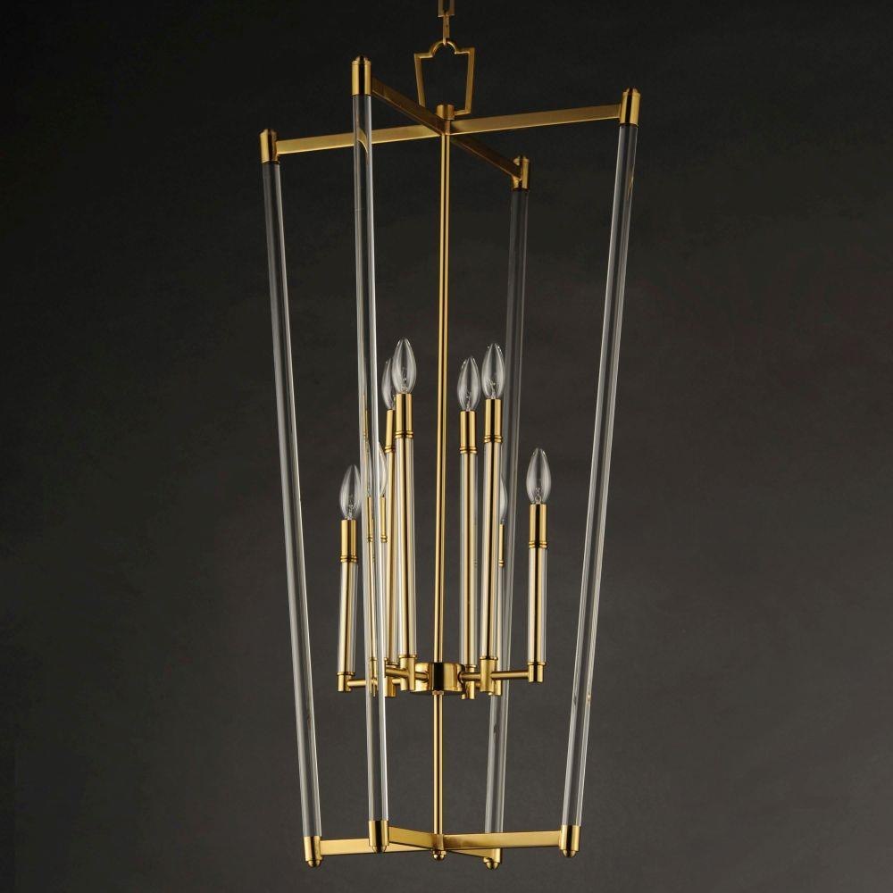 Unique and dramatic pendants are created using solid, Clear glass rods that fit into castings finished in Polished Nickel or Heritage Brass. The elongated forms are great for foyer spaces and stairways, while the sconces provide a chic accent to the space they are installed. Combining contemporary sleekness with classic styling, this collection complements a wide range of decor styles.