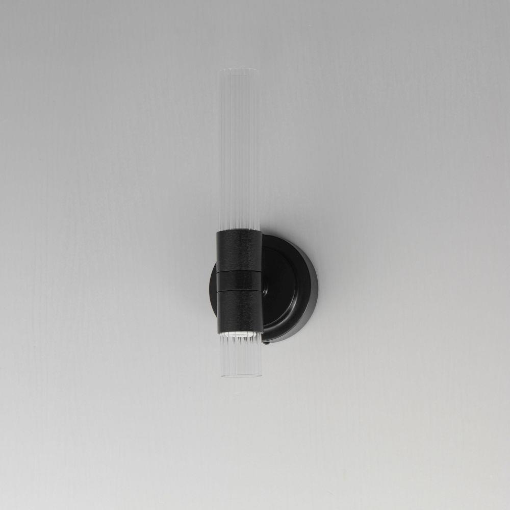 A modern tribute to the wheel chandelier, the Ovation collection integrates LED technology for a dazzling lighting effect. The LED light produces a shimmering lighting effect along the tall and narrow fluted glass shades adding celebratory effervescence. The expansive diameters of the rings join at the center in equipoise using four down rods to suspend the frame. Mount the chandelier from the collector or make use of additional chain supplied to extend the height with ease. Additional sconces with up and down lighting complete the design. Available in Brushed Brass or Black, the collection toasts a classic design creating an elegant statement.