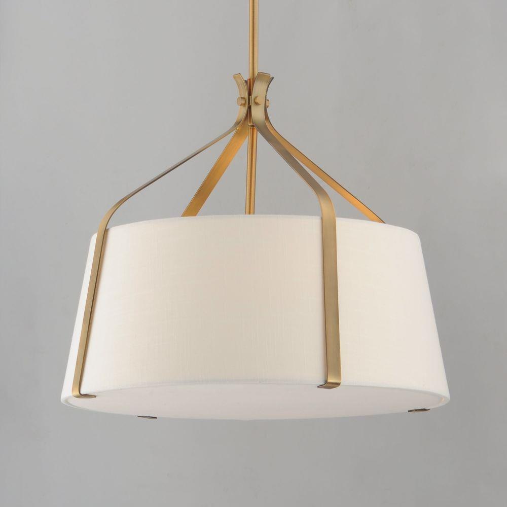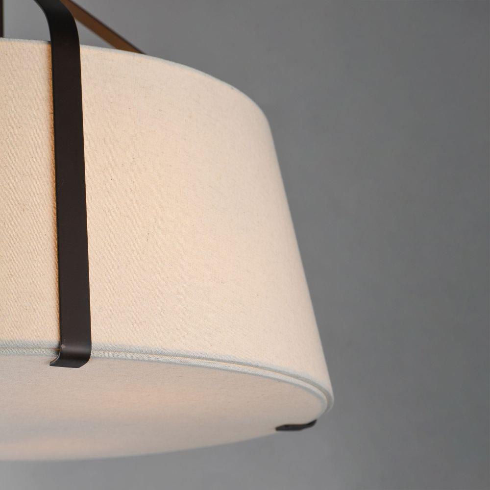 Inspired by timeless tailoring and architectural form, the Bandera collection reimagines the classic fabric shade pendant with refined, sculptural detail. A gracefully flared metal yoke suspends an elegant linen shade--offered in either Oatmeal with Dark Bronze or crisp White with Natural Aged Brass. A matching fabric diffuser on the larger pendants creates a soft, ambient glow ideal for dining areas, bedrooms, and entry spaces. The coordinating wall sconce extends the tailored aesthetic to more intimate settings, perfect for bedside or hallway installations. Balancing crisp geometry with warm texture, Bandera brings an elevated, transitional presence to interiors.