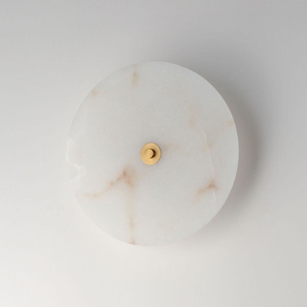 Modern in execution, the Quarry collection features natural Spanish alabaster in an iron frame finished in Darkened Bronze or Natural Aged Brass. Dedicated LED housing shine light on alabaster panels, highlighting the stone's beautiful, veined characteristics while also providing ambient lighting. These surface mounted fixtures are designed to install on either wall or ceiling surfaces.