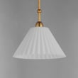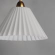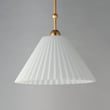The Kismet Pendant by Kismet House delivers a harmonious blend of biophilic design and modern elegance. Featuring charming Satin White glass shades inspired by pleated fabric, this lighting fixture enhances any space with its unique proportions and rich gold leaf finish.