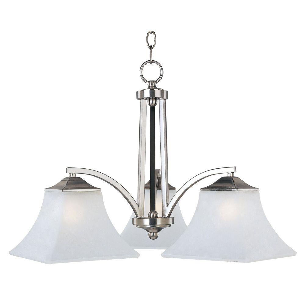 Straight lines and curves make this contemporary series a classic. Square metal tubing finished in your choice of Oil Rubbed Bronze or Satin Nickel support tapered square Frosted glass shades.