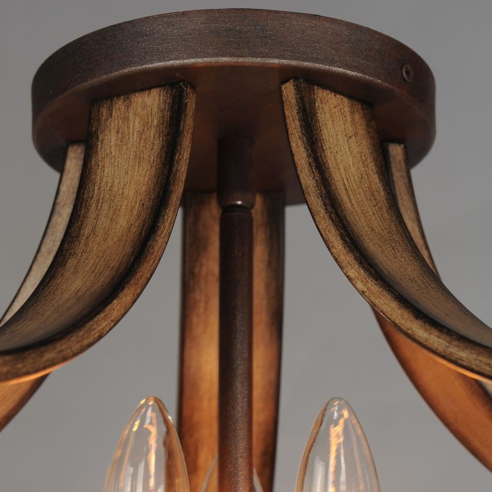 The timeless Empire chandelier shape styled in timeworn, natural finishes uses durable steel in a Driftwood finish that includes a spherical ornament in matching finish. The arms curve steeply, swept lower than the chandelier's center, emphasizing the chandelier's height while mitered angles at its top accentuate the thickness of the barrel-like planks. Exposed candelabra lamps on Anthracite candle covers adding texture and contrast. The result of the organic wood tones reduces the formality of the classical shape making the elegance of this design more inviting.