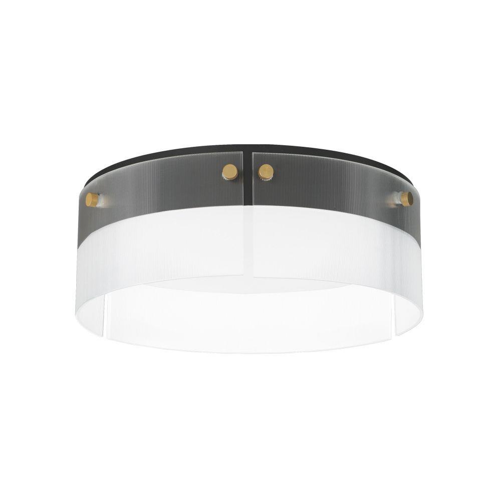 Panes of clear ribbed glass are secured with oversized knurled Natural Aged Brass pins on a Matte Black frame. Obscured by the glass texture, the integrated LED is not only soft on the eyes but also provides an abundance of illumination. Varied configurations of linear pendants, flush mounts, desk lamp, and vanity lights round out this collection. The vanity lights feature an easily accessible 5-CCT toggle switch that allows you to set different light color temperatures during or after installation.