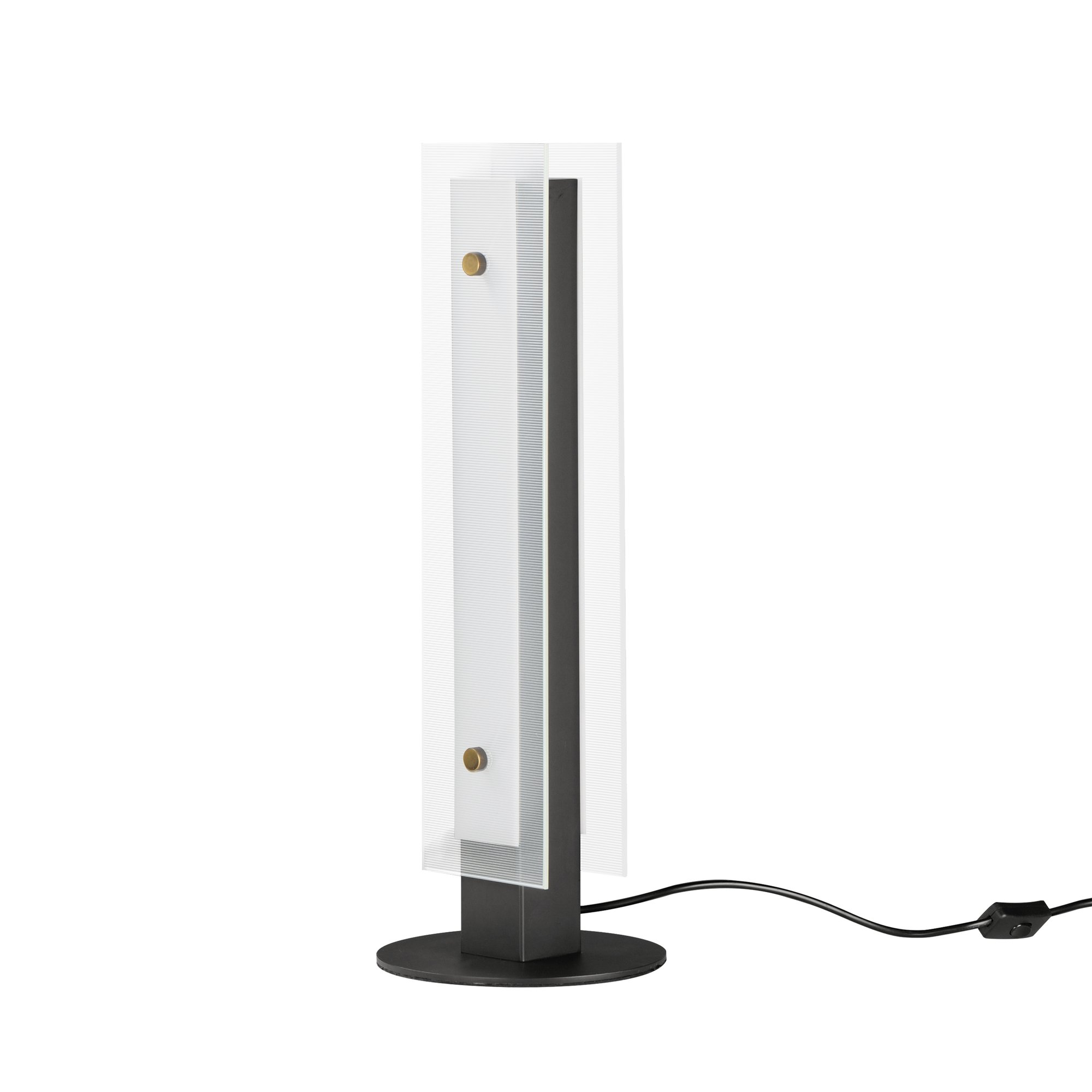 The Spectre Table Lamp elevates your space with its striking design and functional brilliance. Featuring clear ribbed glass secured by oversized knurled Natural Aged Brass pins, this lamp not only enhances aesthetics but also delivers ample illumination.