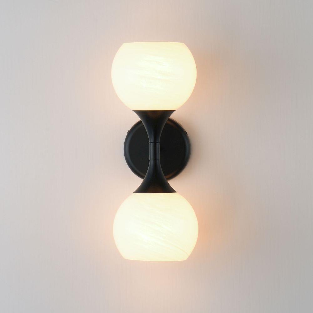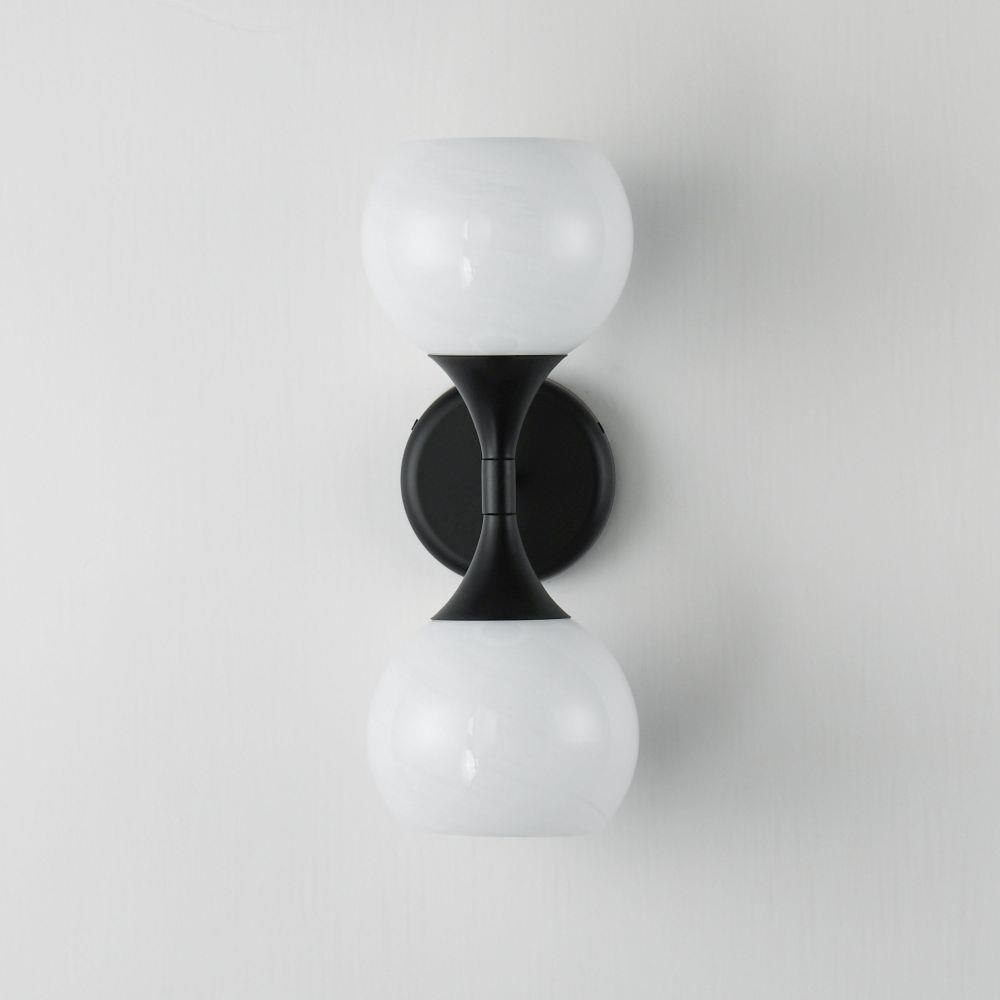Featuring a swirling white Marble Glass globe that encases the light source, the shades are reminiscent of snowglobes. The collection provides a wonderfully wintery composition that is timelessly elegant effortlessly sophisticated. Choose from multiple sizes of the bath vanity lights as well as a larger glass pendant or flush mount options. Available in Natural Aged Brass, Polished Chrome, or Matte Black.
