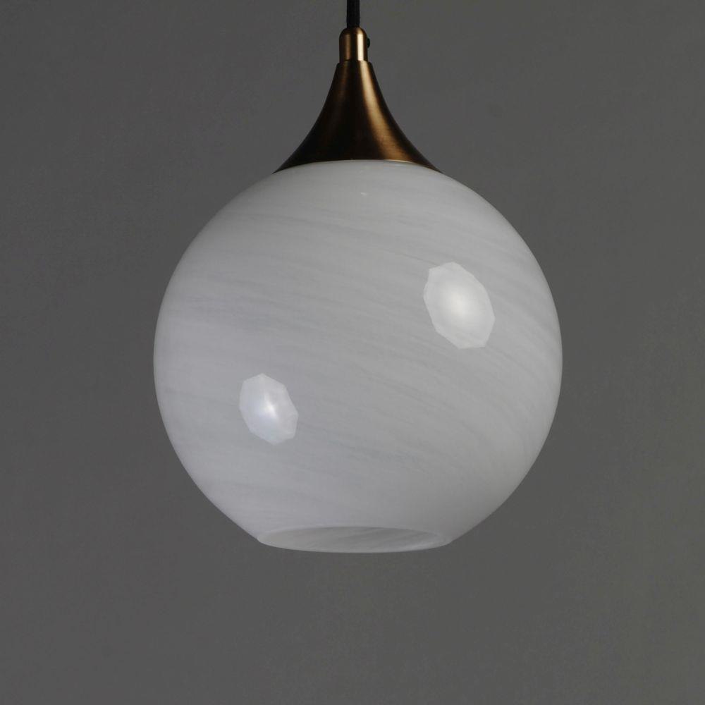 Featuring a swirling white Marble Glass globe that encases the light source, the shades are reminiscent of snowglobes. The collection provides a wonderfully wintery composition that is timelessly elegant effortlessly sophisticated. Choose from multiple sizes of the bath vanity lights as well as a larger glass pendant or flush mount options. Available in Natural Aged Brass, Polished Chrome, or Matte Black.
