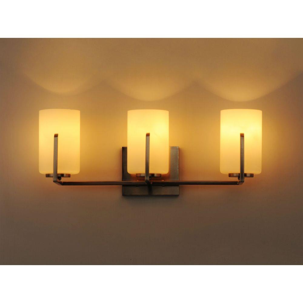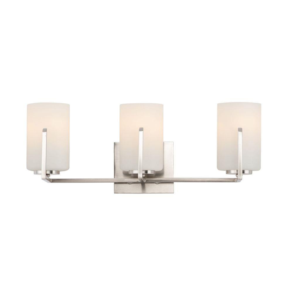 Inspired by the Modernist architect Edward Dart, this collection features straight line frames finished in Satin Brass or Satin Nickel that support Satin White glass cylinders for a clean and modern look. The end of the frames turn up and end in an angle emphasizing a minimalist geometry popular in Modernist work.