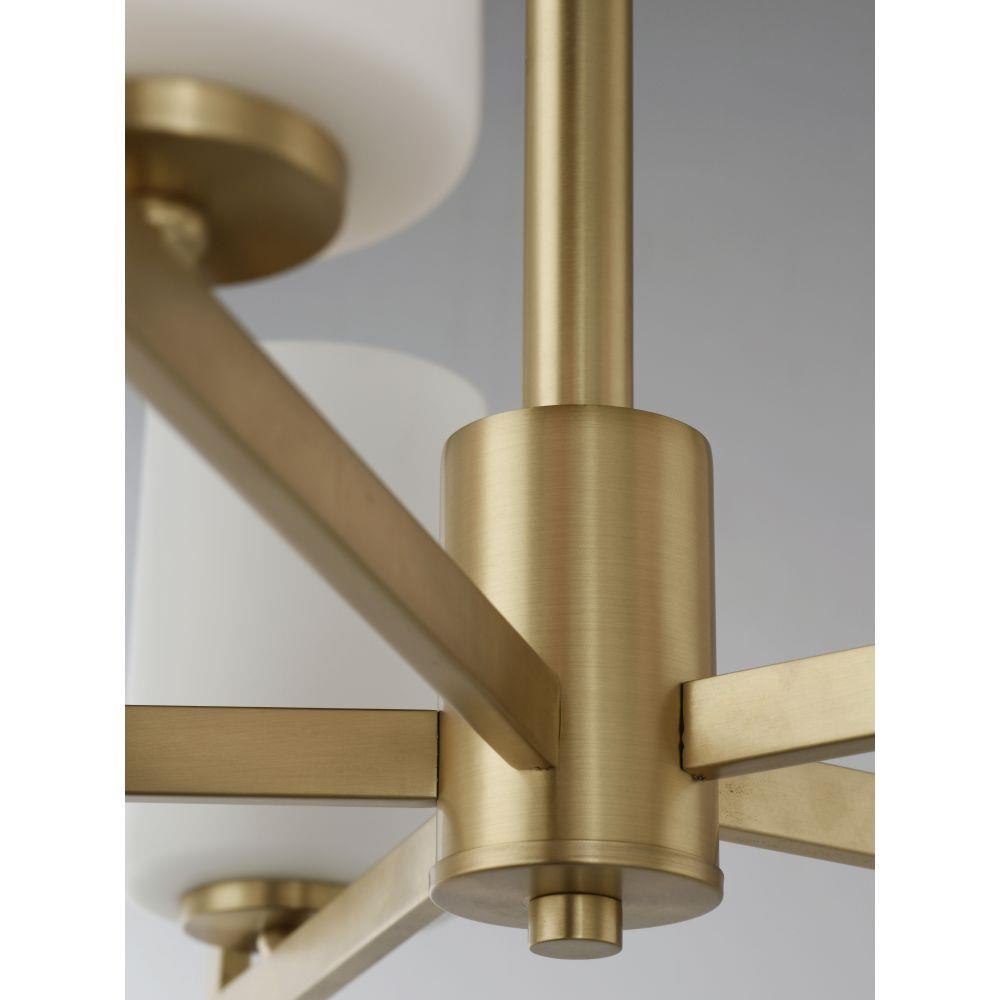 Inspired by the Modernist architect Edward Dart, this collection features straight line frames finished in Satin Brass or Satin Nickel that support Satin White glass cylinders for a clean and modern look. The end of the frames turn up and end in an angle emphasizing a minimalist geometry popular in Modernist work.