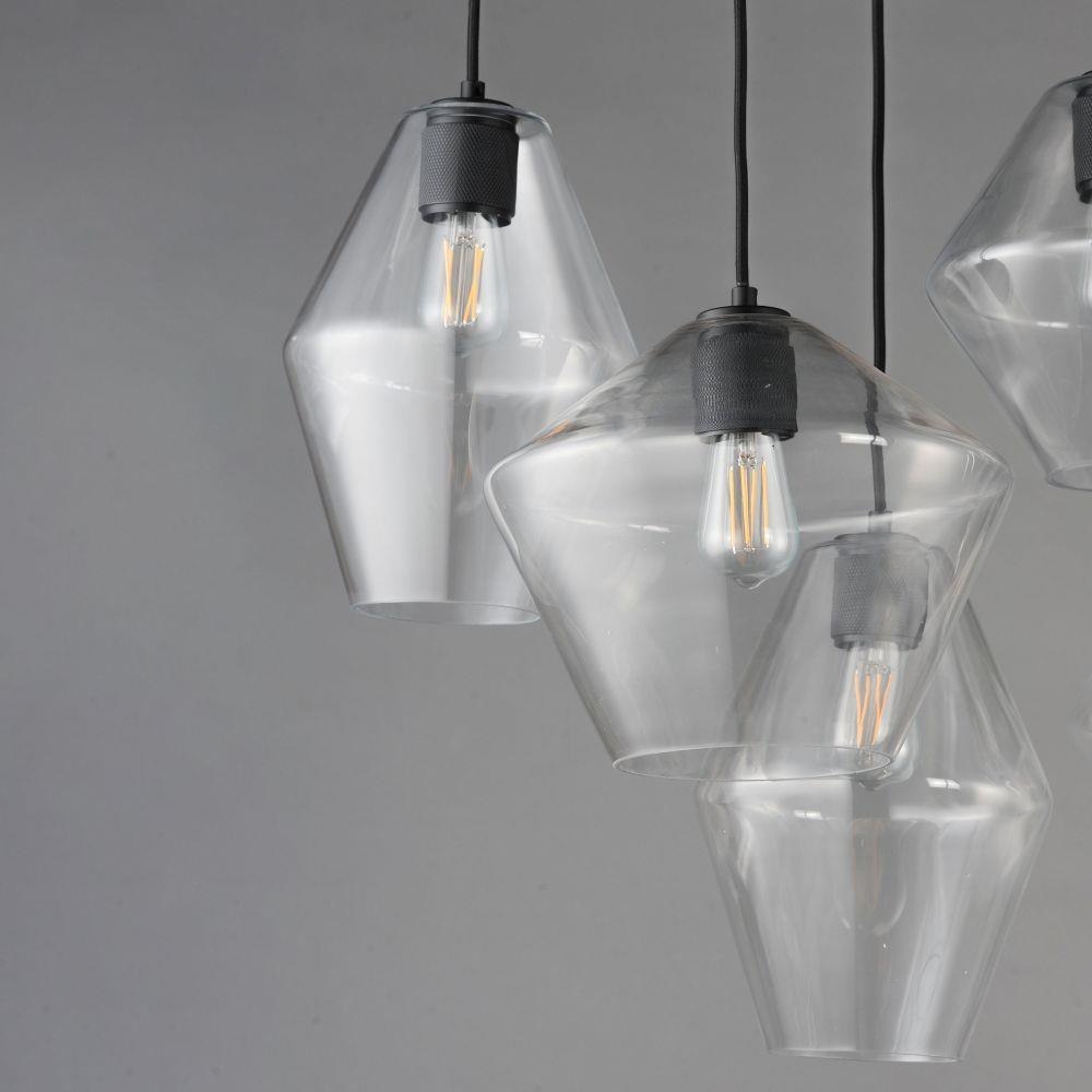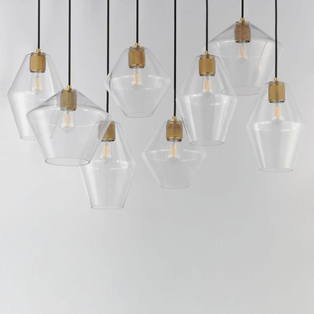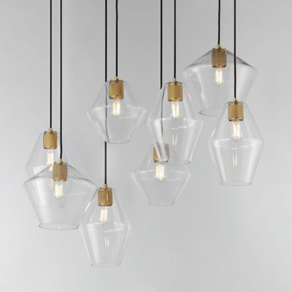 Crystalline clarity meets modern structure in the Geode collection. Inspired by the faceted symmetry of natural mineral formations, each clear glass shade is cut in an angular form that plays with light and shadow. The bold, geometric silhouette feels effortlessly architectural -- elevated further by subtle industrial notes like knurled screw collars and diamond shaped tubing on bath configurations. Offered in a range of sizes and finishes, Geode brings sculptural interest to kitchens, bathrooms, and dining rooms as well as statement-making entryways.